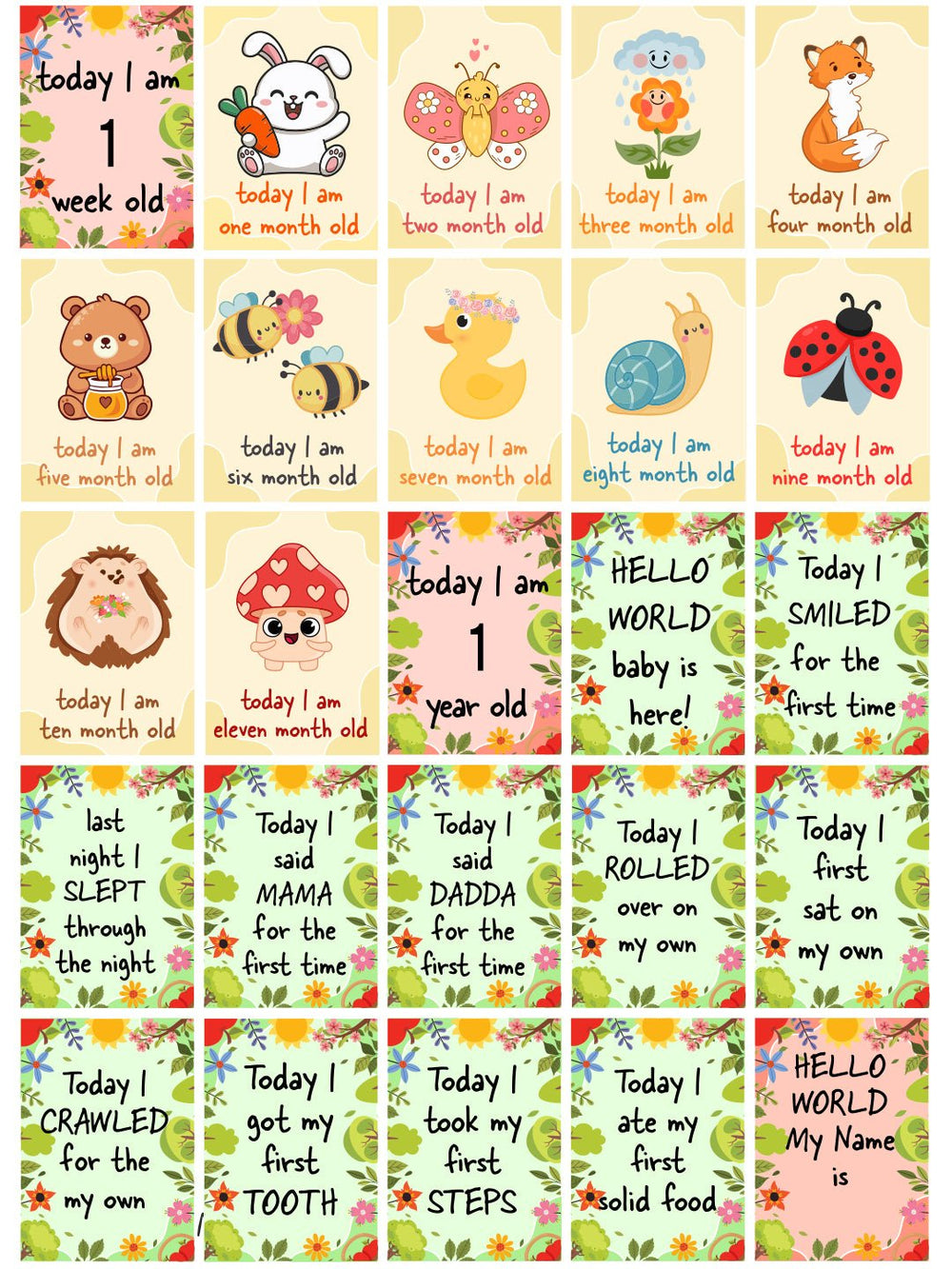Your little one's growth is a precious memory. It's amazing how fast babies grow each day and month to month. Keep track of your precious memories each month with your little one. These super cool cards with fun designs will help you track your baby's milestone and those very first moments close forever.