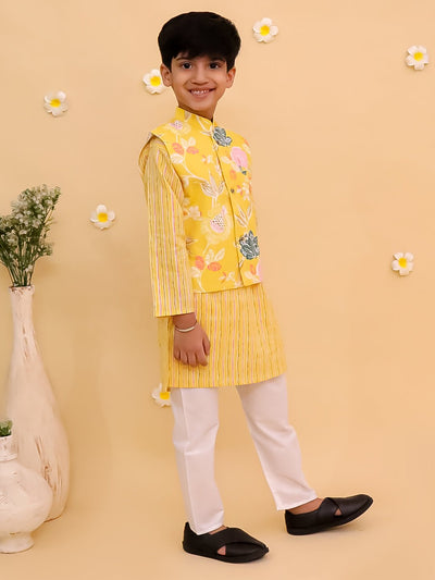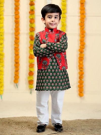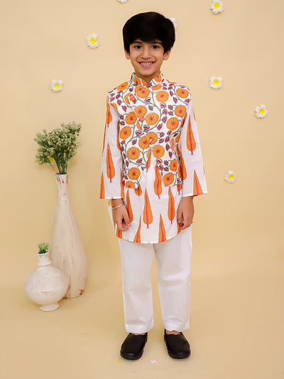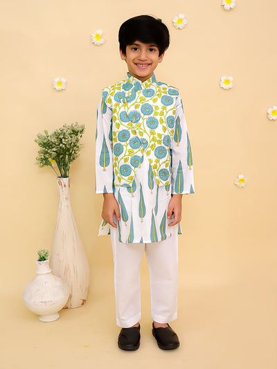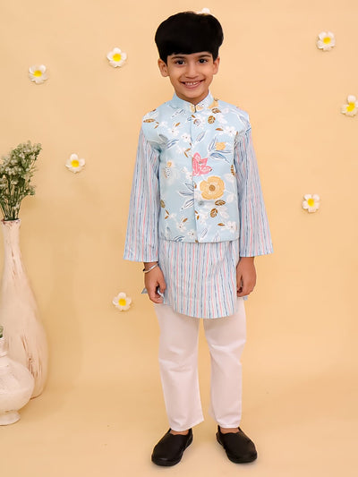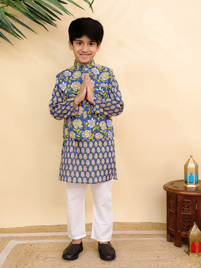Blue Royale Boys Floral Print Jacket And Kurta Pajama Set