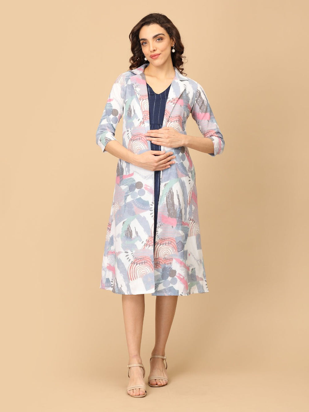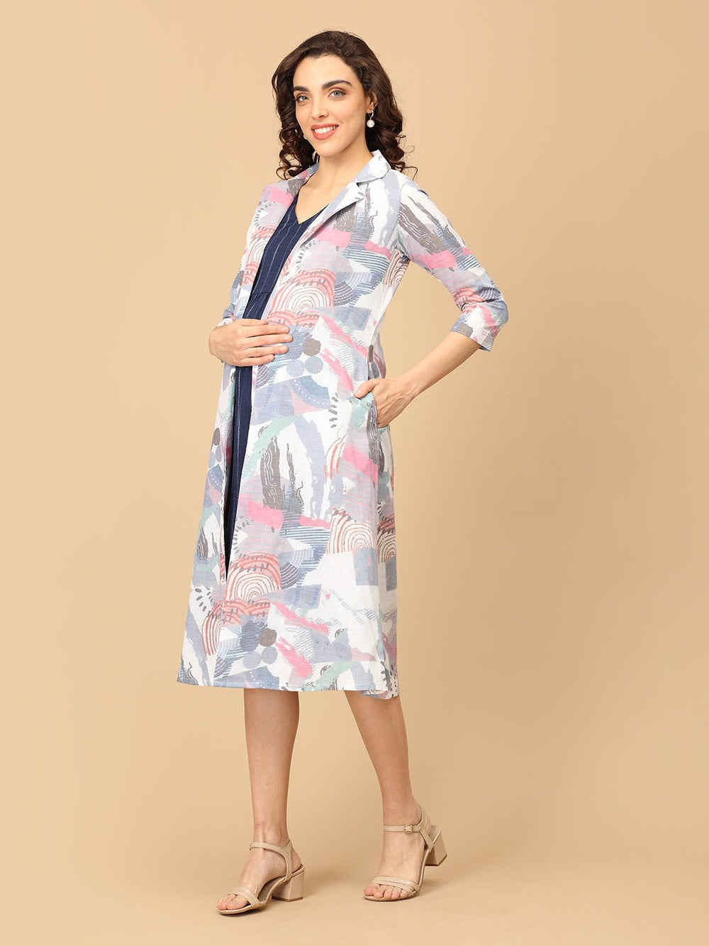 - Abstract Print Maternity and Nursing Shacket Dress