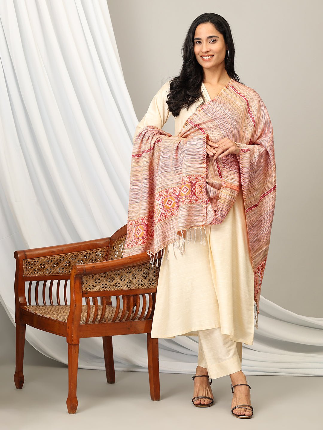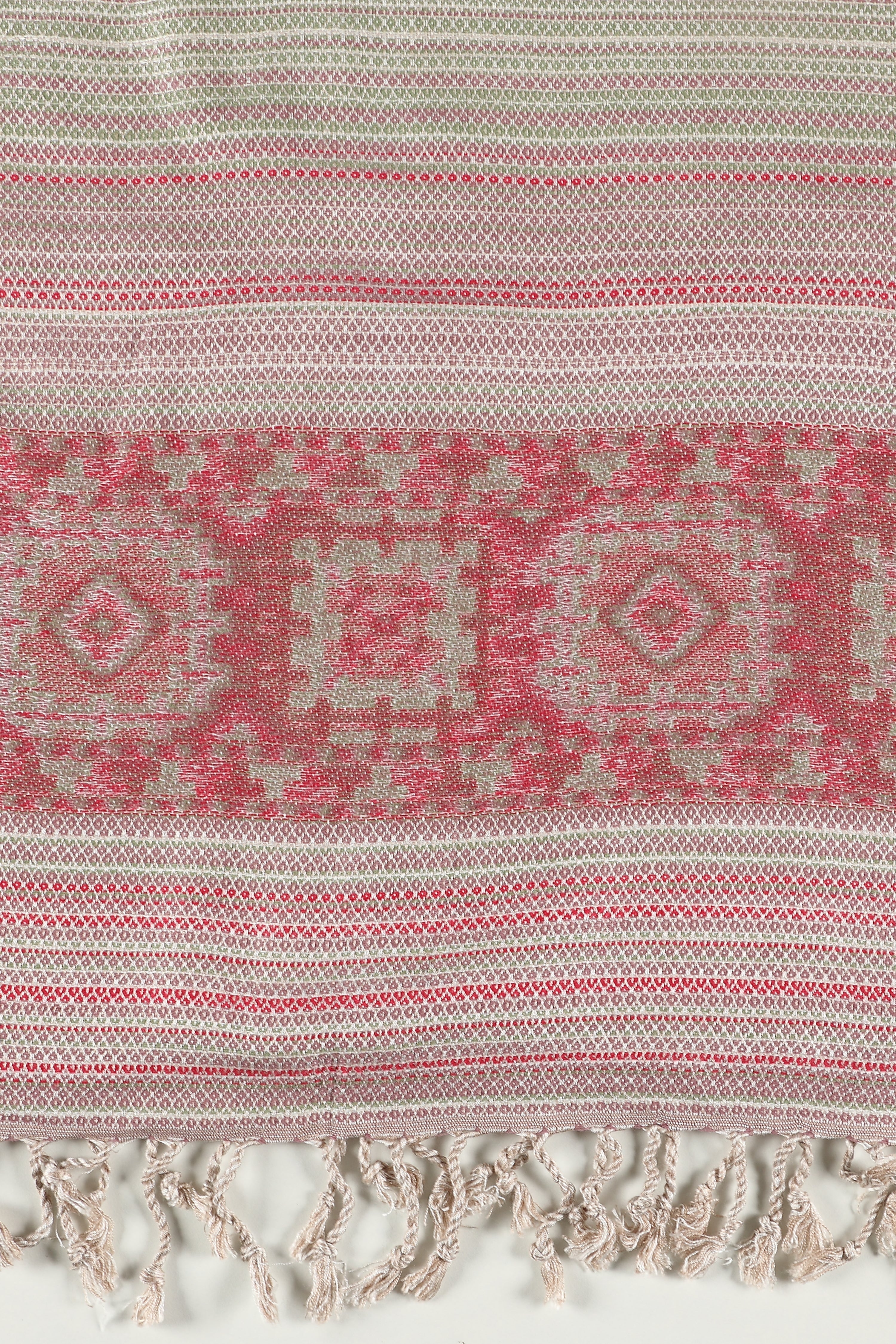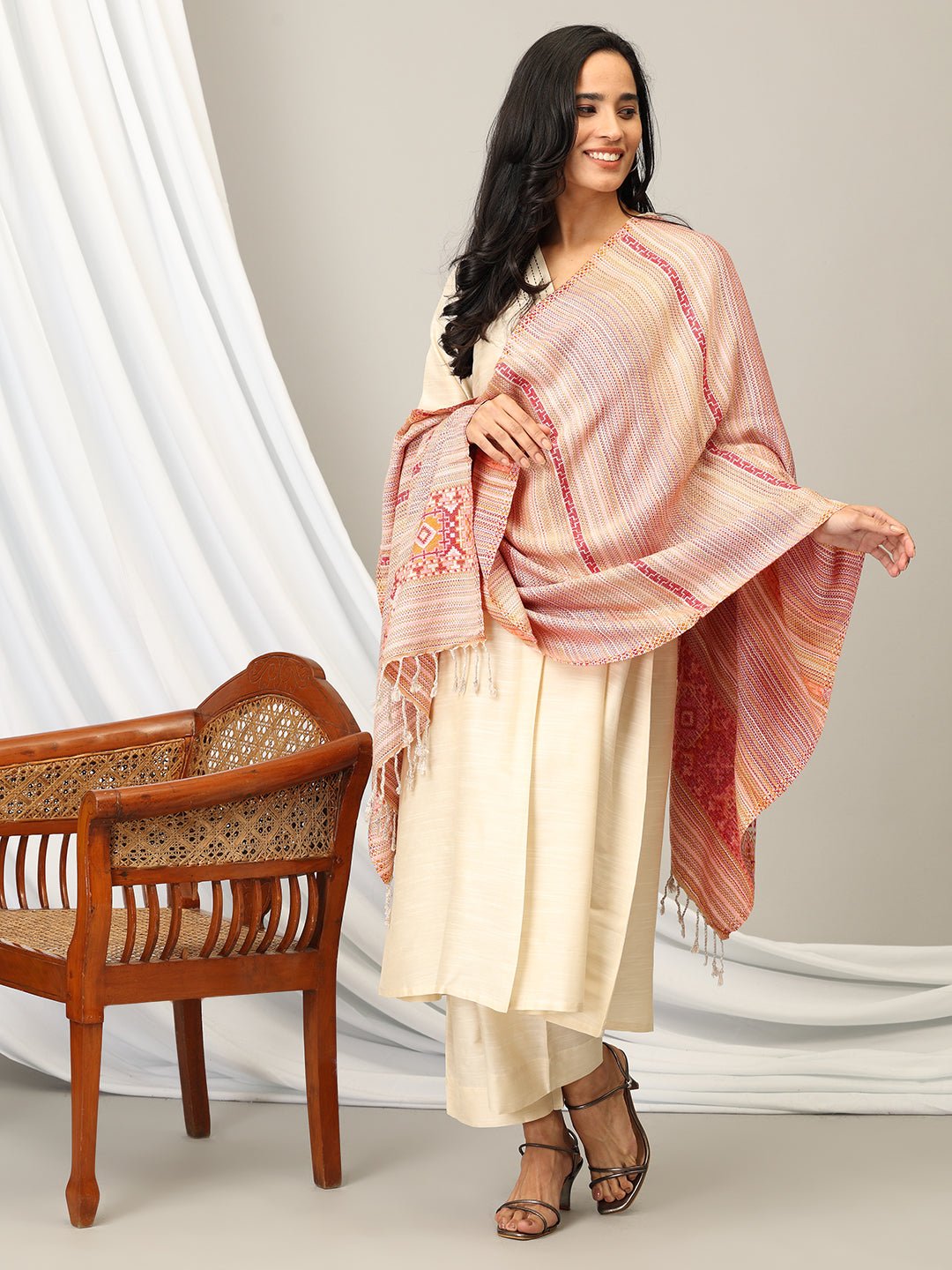 - Add a touch of elegance to your wardrobe with this beautiful Jacquard Stole featuring a charming tasseled border.