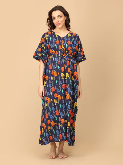 - Multi-Colored Print Kaftan Nighty With Nursing