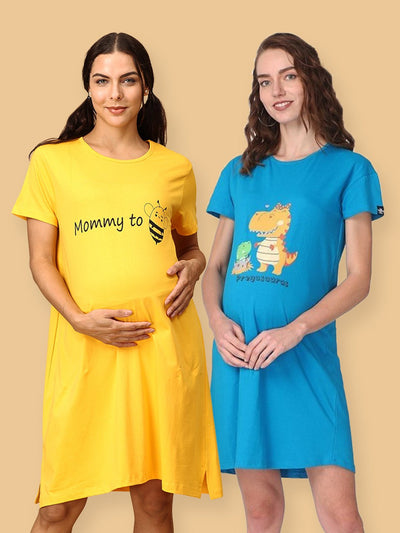 Combo Of Bun in the Oven& Baby On Board Maternity T-Shirt Dress(Set of 2) is super comfortable dress for maternity a will keep you at ease the whole day. Made of 100% Cotton which super comfortable and the loose fit helps the belly grow easily.