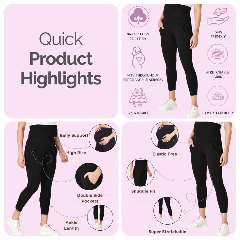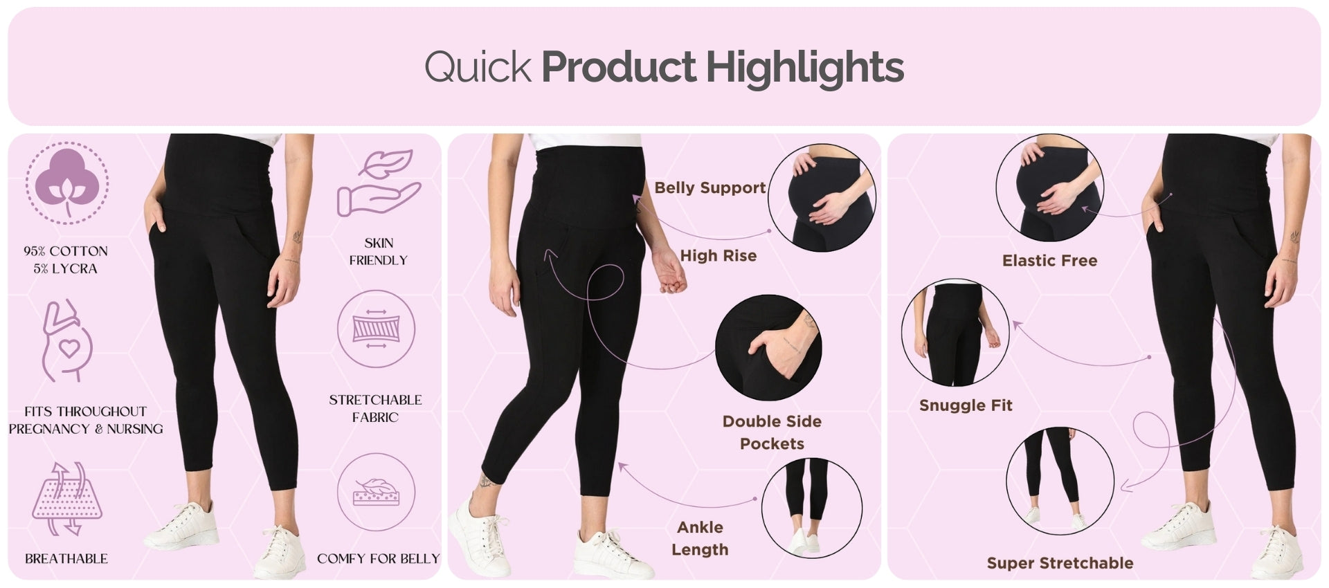 The Mom Store Maternity Leggings will keep you comfortable all day. These bump-friendly Leggings are made from a cotton blend with a wide, belly support waistband to create a comfortable fit both during and after pregnancy. The belly support grow with your belly during your pregnancy time and give you snuggle fit after the delivery without any discomfort.