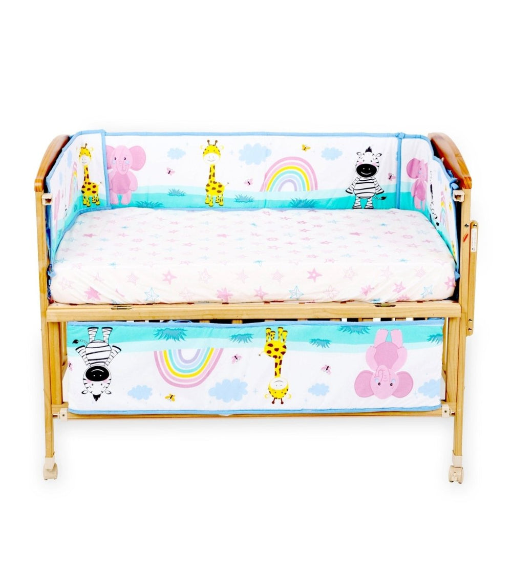 The Mom Store presents cutest Bumpers ever, especially made for our sweetest little ones from 100% cotton. This 4 section crib bumper will protect your little one's hands and feet from getting stuck in the crib rails. The bright colours and characters will keep them engaged as they play in their cot.