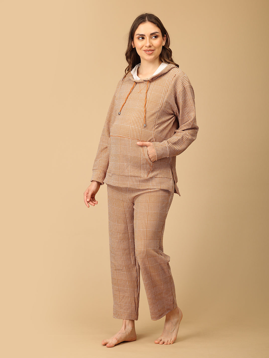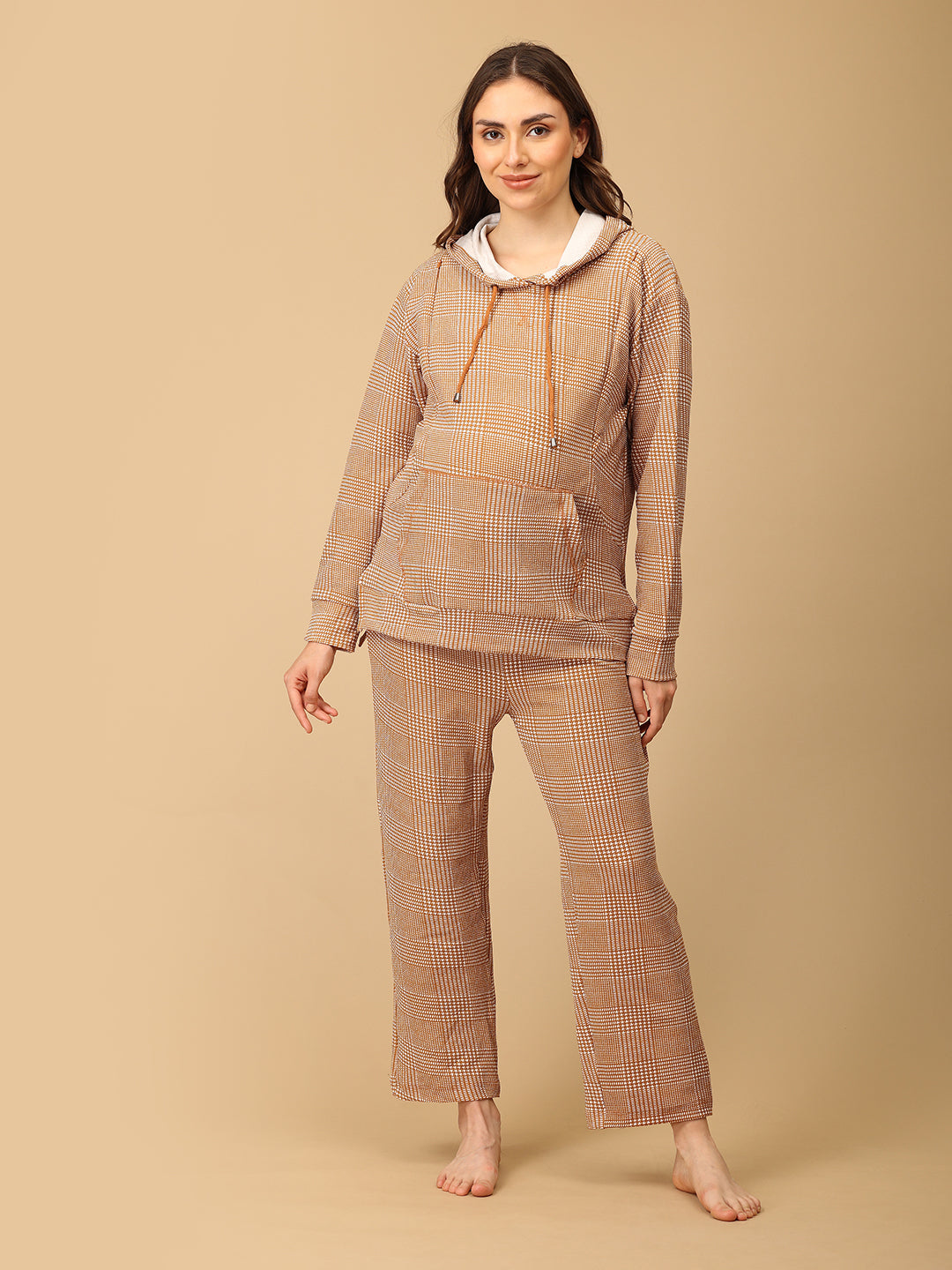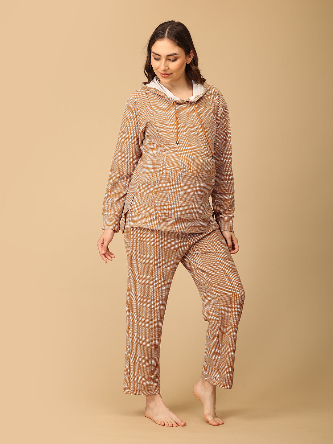 Golden Grid Maternity And Nursing Hoodie Pajama Loungewear Set