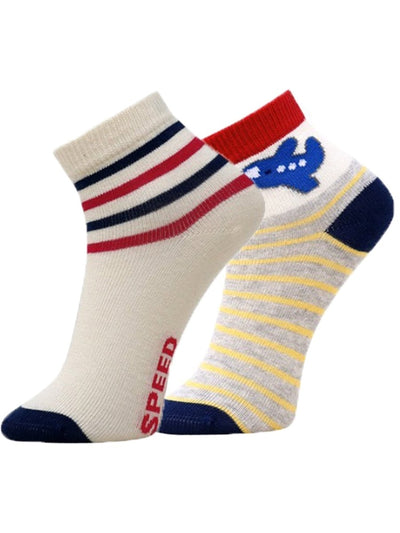 Combo Of 2 Kids Ankle Length Socks:Rider:Creme, Red