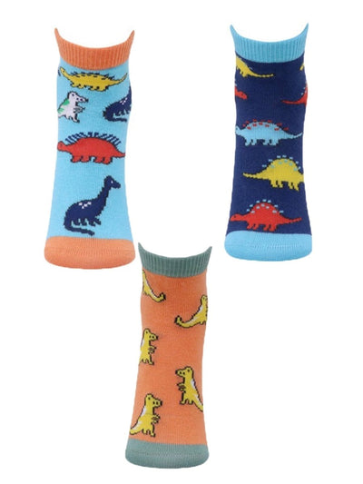 - Mustang 3 Pair of Kids Anti Skid Ankle Length Socks With Dino Print