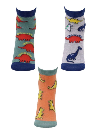 - Mustang 3 Pair of Kids Anti Skid Ankle Length Socks With Dino Print