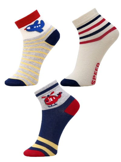 Combo Of 3 Kids Ankle Length Socks:Rider:Creme, Red,Off White