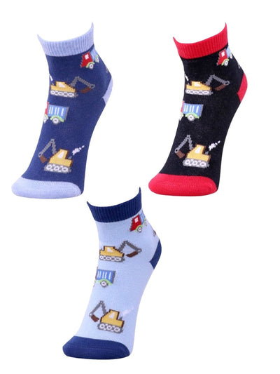 - Mustang 3 Pair Of Kids Ankle Length Socks With Trucks Print