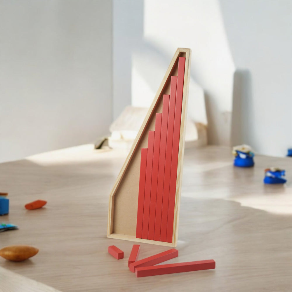 Introducing the Little Ginnie Red Rods Montessori Kit, a key educational tool designed for children aged 3 and above. This Montessori toy features 10 vibrant red rods of varying lengths, perfect for helping children develop basic early numeracy skills and understand fundamental math concepts.