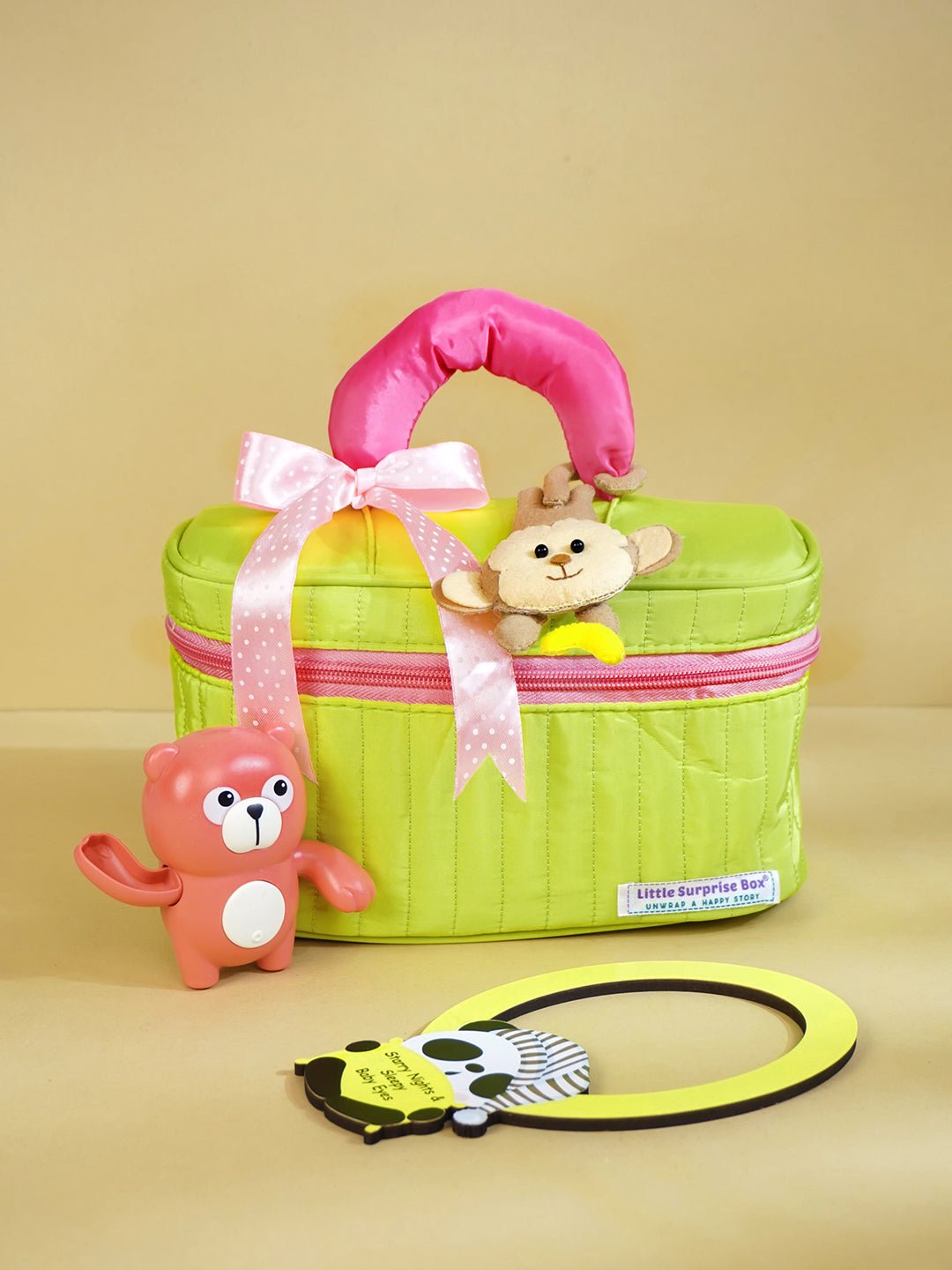 • Pillow soft Satin Fabric Pouch: This hamper comes nicely packed in a cute foldable soft pouch with handle and foldable compartments which make sit easy for the new parent to carry toiletries or important essentials for the child while travelling.