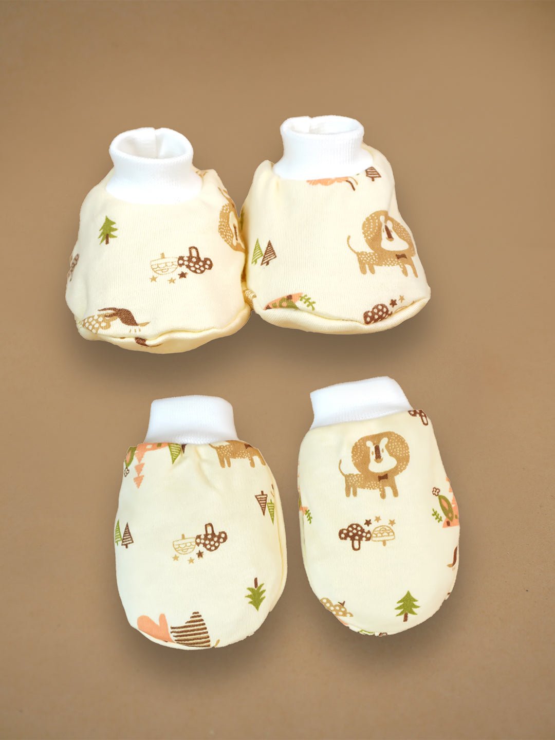 • 13 Pcs Assorted Gift Hamper Set: This stunning 13 pcs Gift Hamper set is a beautiful assortment of exclusive essentials for a baby boy. This hamper includes • 1 soft satin fabric Pouch with a beautiful handmade felt monkey Toy hanging • 1 Beautifully printed onesie •1 Door Signage •1 newborn Cap • 1 pair of Mittens • 2 Muslin Napkins • 2 Bibs • 1 pair of booties • 1 Toy.