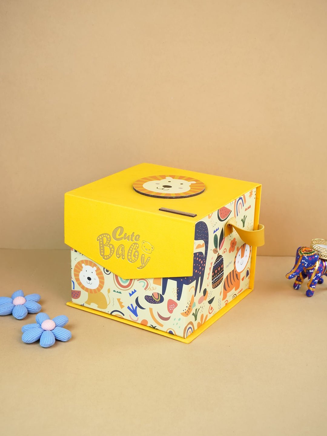 • Hardboard Box: This piece comes nicely packed in a cute box with handle in a compact shape which makes it a true winner and totally heart warming for the new set of parents.
