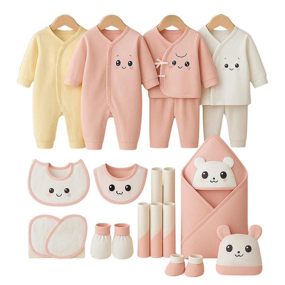 - A 23 Pcs Soft Organic Cotton Assorted Gift Hamper Set: This stunning 23 pcs Gift Hamper set is a beautiful assortment of exclusive essentials for a baby. Its difficult to think about a wholesome and still unique gift to your little loved one. Newborn Hampers from Little Surprise Box solves this gap and bring in an uniqune, fresh and premium luxury quality hamper designed for the little one. This hamper includes 1 Pillow,1 Pair Mittens,1 Pair of Gloves,1 Swaddle, 1 Belt,2 Button Rompers,2 Lace Shirt,1 Diaper Changeable Pant,1 Full Pant,1 Cap,5 Napkins,2 Big Button Bibs, 2 Lace Bibs.