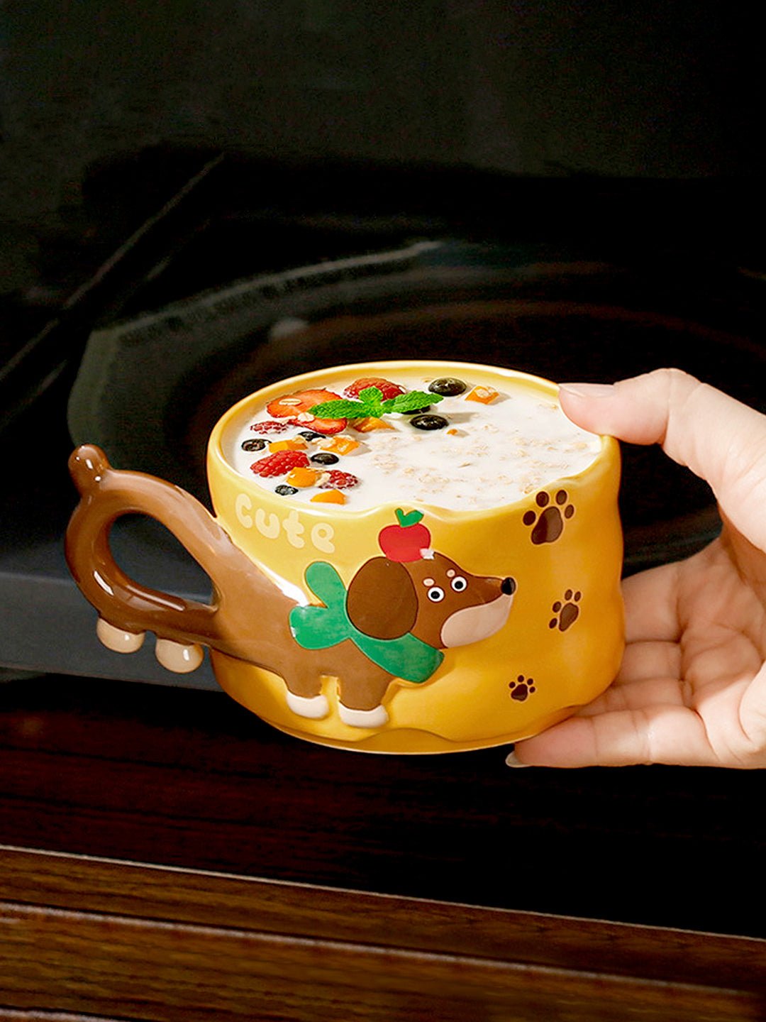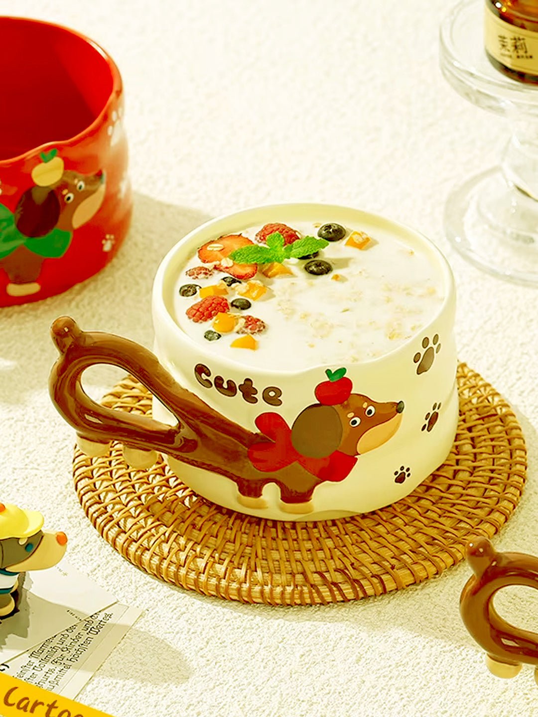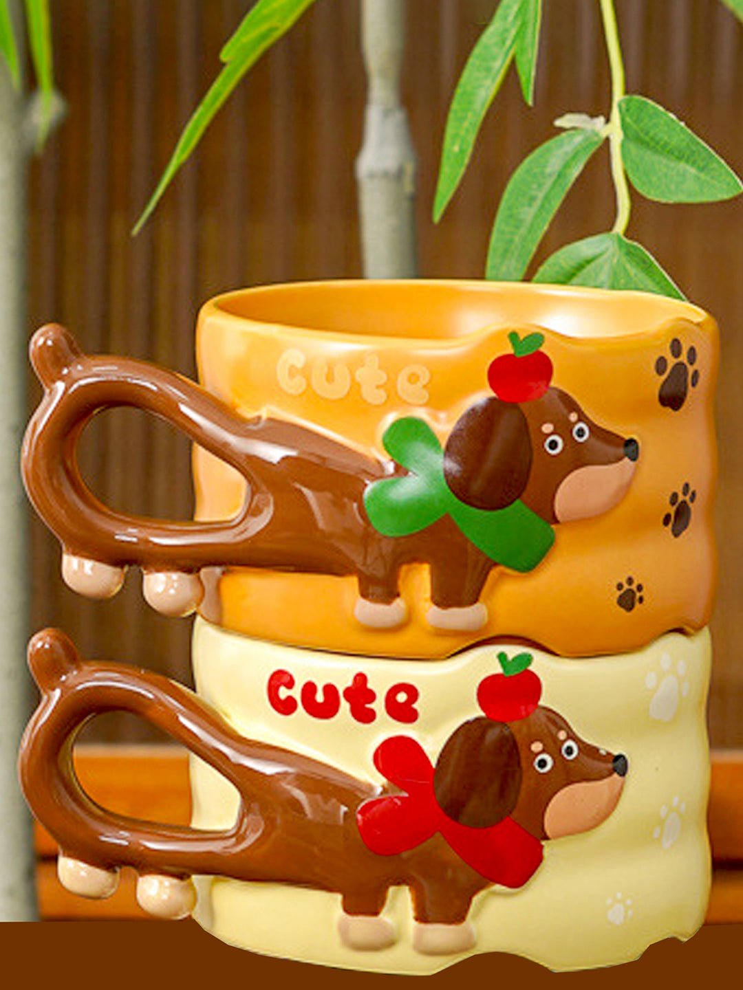 - 2pcs Stacked Design Cup Set: This cute dog-themed ceramic stacked mug set is perfect for anyone who loves fun and playful designs. Crafted in a rich combination colors with adorable puppy artwork and charming paw prints, it features a unique 3D dog tail handle that adds an extra touch of whimsy and delight.
