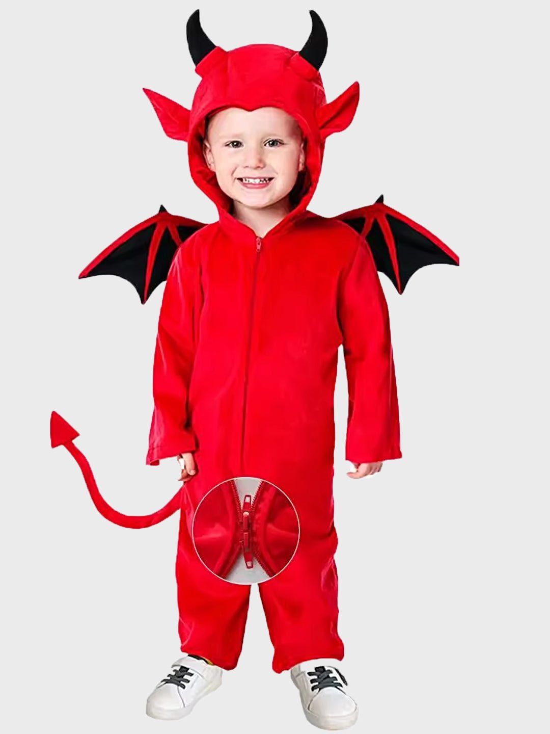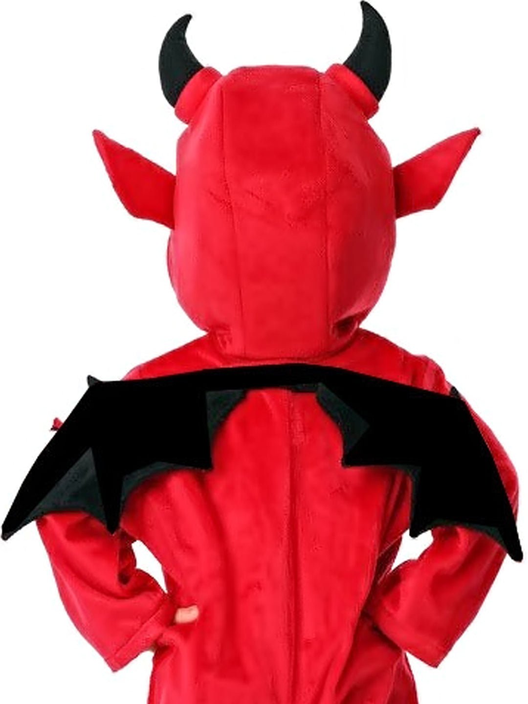 - Accessories, 1pc set: A one piece Hooded Jumpsuit set attached small horns and a filled 3d tail giving a spooky look along with attached Wired Wings giving a good realistic look .