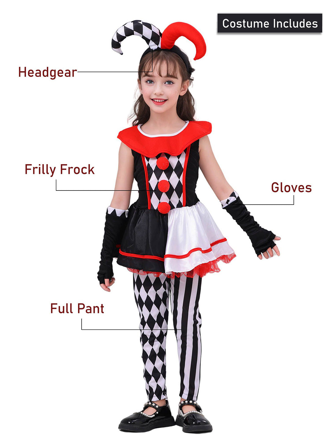 - Quality: Made of good quality polyester cloth and net, very comfortable and breathable to wear. Designed for kids to play the role of a joker /jester or an entertainer. Suitable for unisex Kids, Children, Boys & Girls.