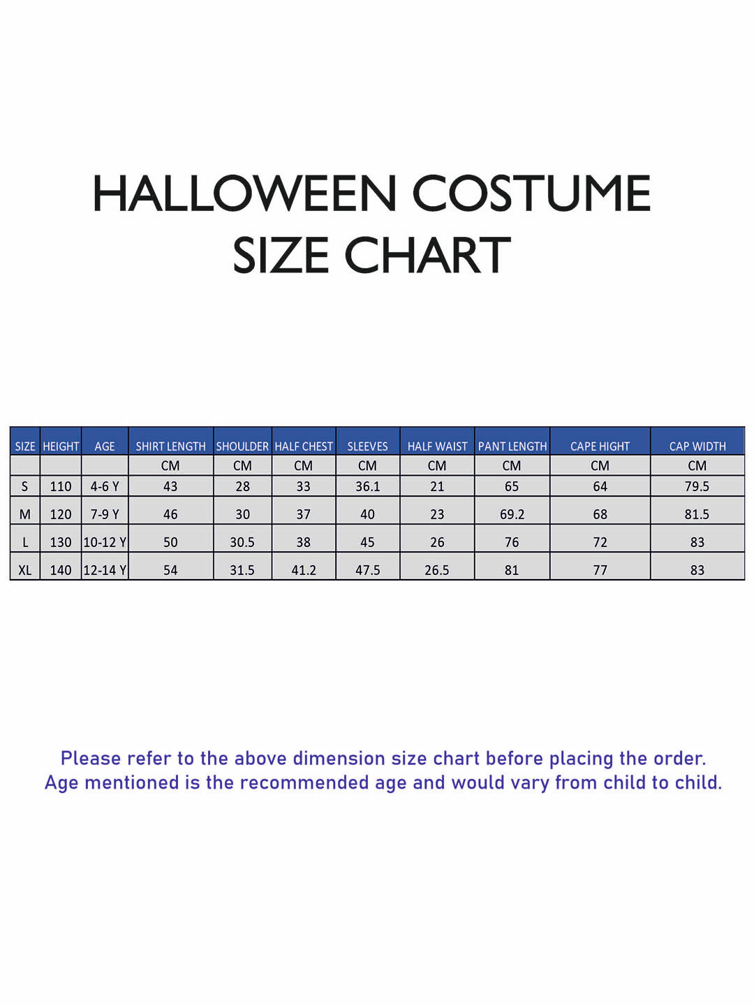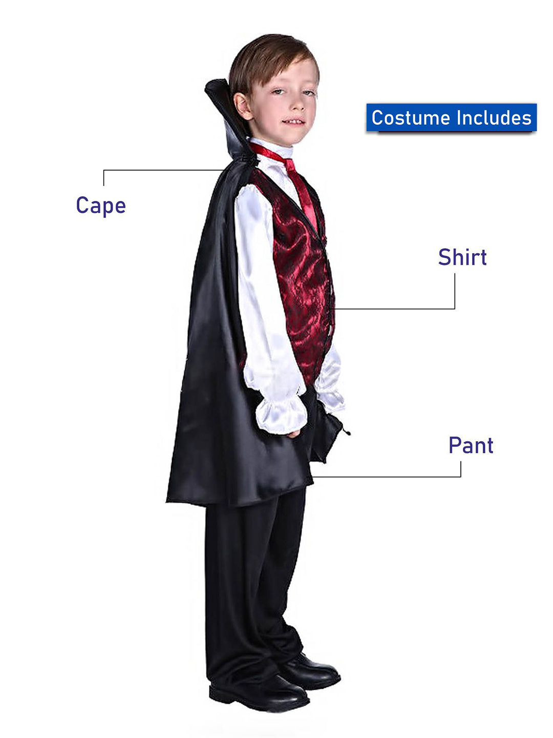 - Accessories, 3 Pcs set: 3pcs set comprises of a shirt, Pants and a cape. This costume include a lacy full sleeves shirt along with matching pants which add to the charm. This set also comes along with a long cape with stiff styling behind the neck to complete the entire look and make it just perfect.