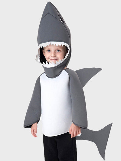 - Accessories, 1pcs set: This costume comes as an adorable one piece set with hood featuring the eyes, teeth and the dorsal fins. There is no shirt or bottoms included in this outfit. This shark body suit with tail makes it look realistic for any school dress up or stage performance.