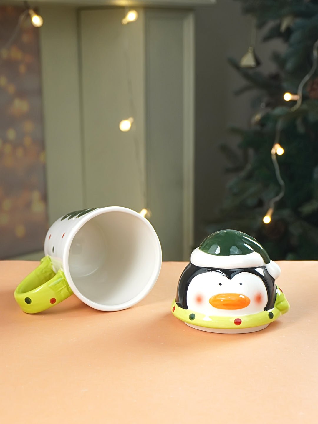 - Classic Christmas Joy: December is meant for some warm hot chocolate doubled with marsmallows and some red green sprinklers.. This combination will look just perfect with our christmas themed ceramic Mugs. This mug brings the perfect classic Christmas feel. With its adorable Penguin themed design, it instantly fills your heart with warmth and holiday cheer.