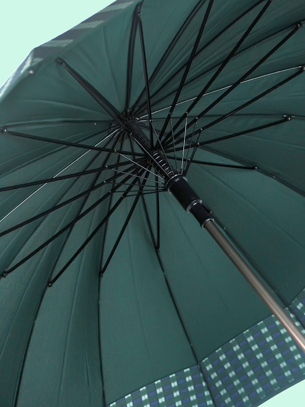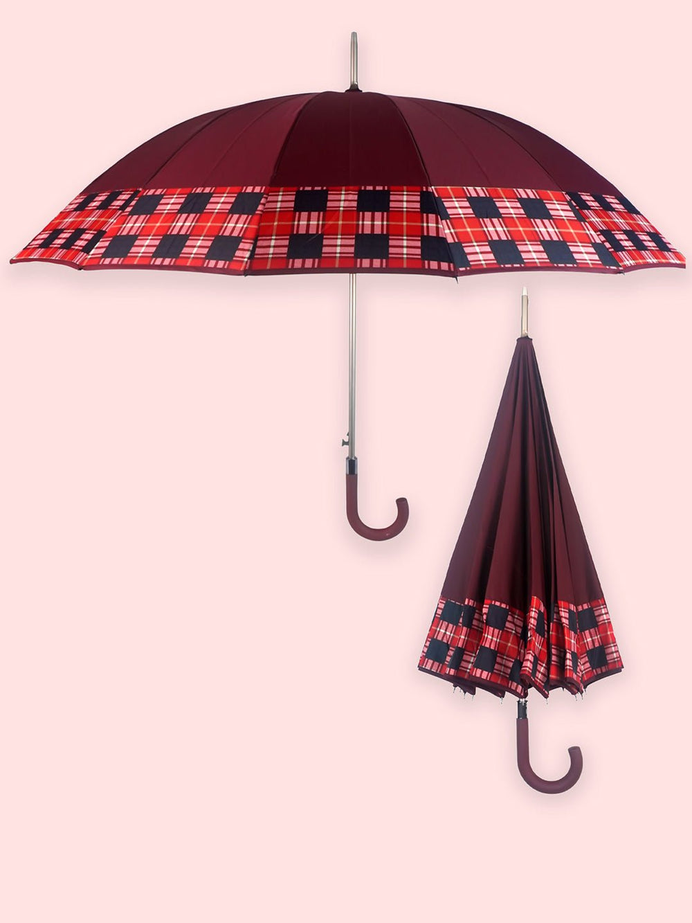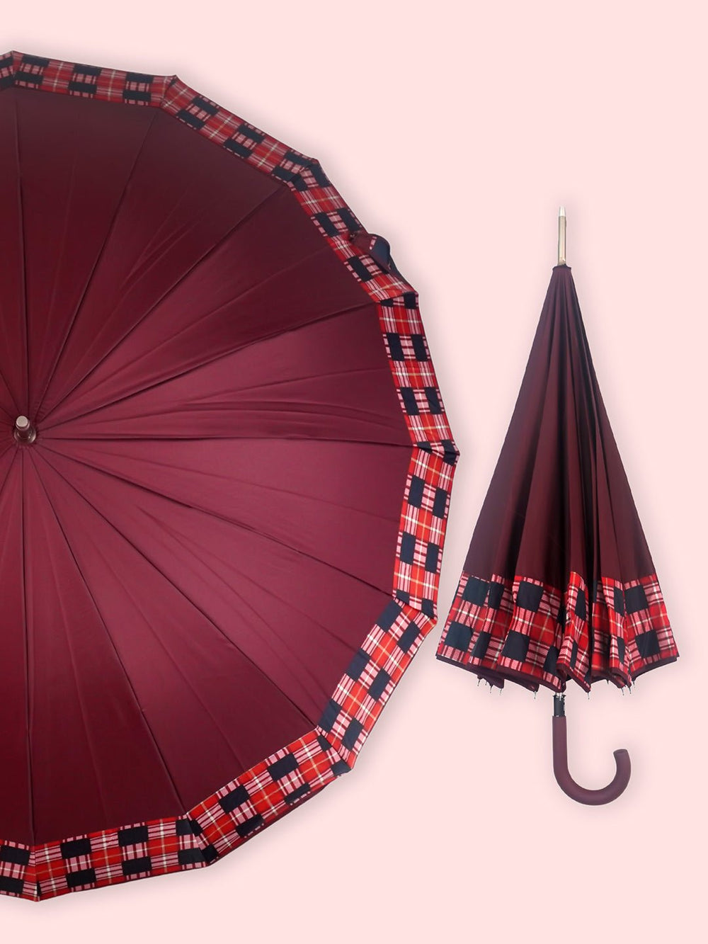 - Extra Large Canopy : If you are looking for ultimate protection with an extra large canopy size this umbrella is a perfect fit.The Chic and classy look of a single tone umbrella with an attractive checkered border combination accentuates the entire piece making it truly unique.
