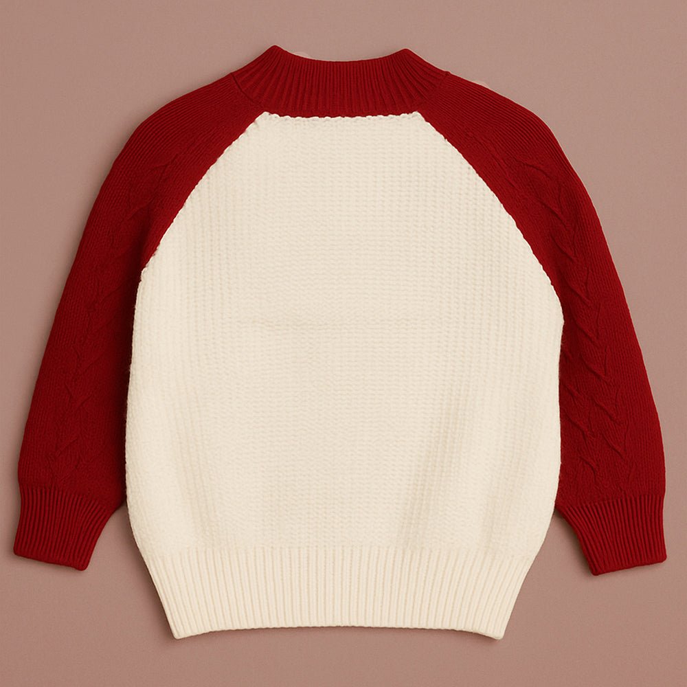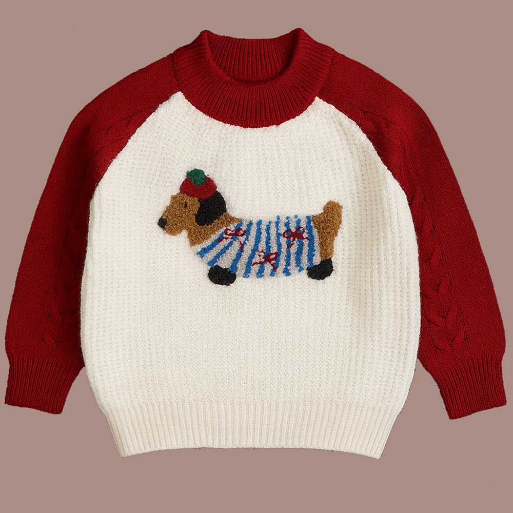 - Design: This cute winter sweater is perfect for little ones who love fun and festive dressing. The cosy cream pullover features a super cute 3D dachshund dog, adding charm and playful detail. The bright red sleeves with knitted patterning enhance the festive feel, making your child look extra cute and cheerful during the winter season.