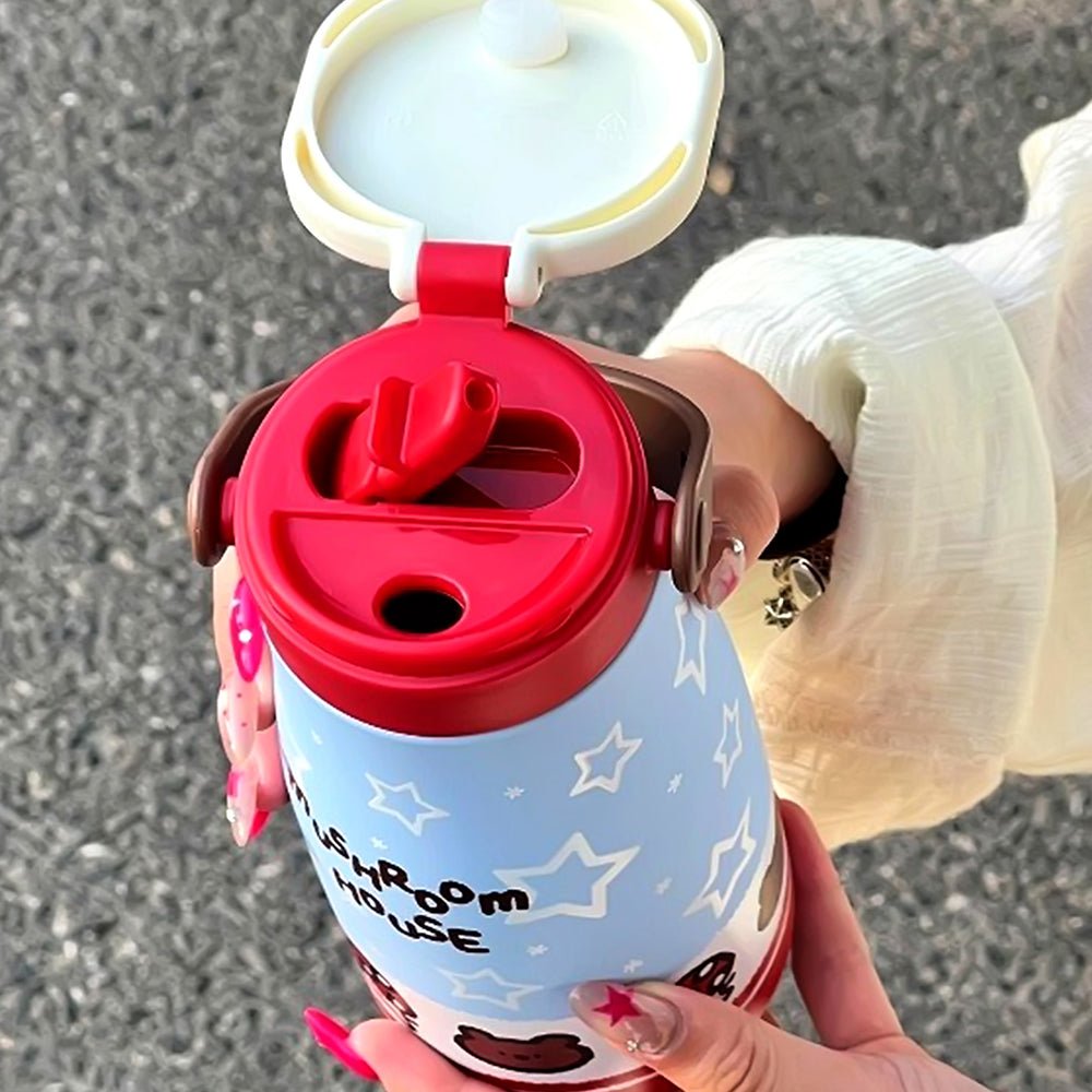 - Design & Feature: This piece is uniquely designed where the child can sip the liquid either through a straw mouth or through a coffee mouth. The unique feature allows one to carry juice or infused water in this bottle.