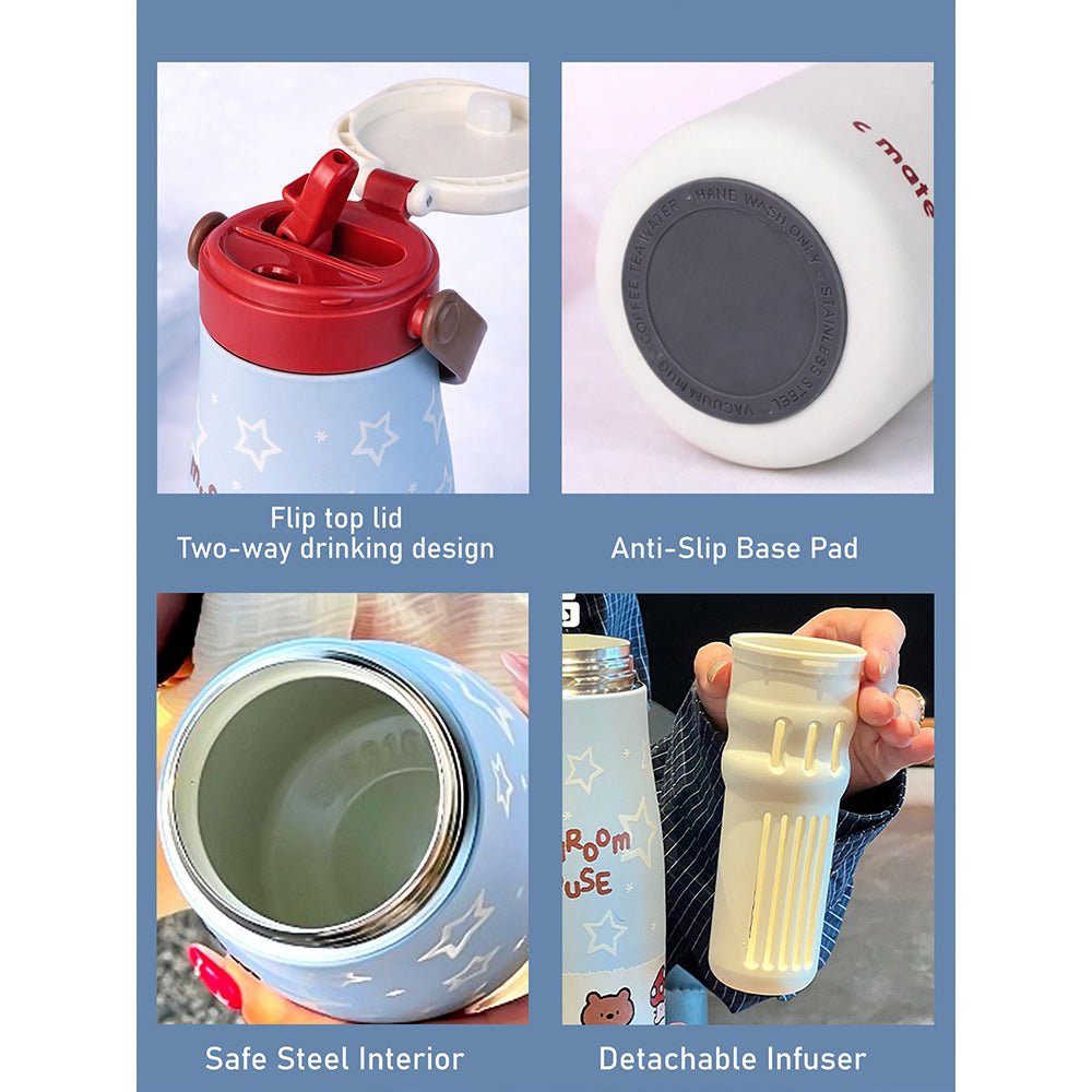 - Insulated with Filter Thermos: A sleek and stylish bottle featuring a warm brown base adorned with soft pastel floral, geometric designs—stylish, minimal, and perfect for both kids and adults. Comes along with a detachable internal filter/infuser ideal for tea leaves, fruit infusions, herbs, or preventing ice and fruit pieces from coming through while drinking. Hence is useful for kids as well as adults.