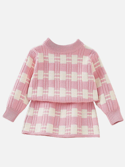Little Surprise Box Pink & Ochre Pleated Bow 2 pcs top & Skirt Winterwear set for Girls-2-3Y