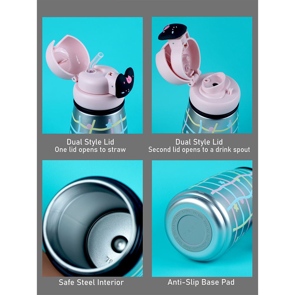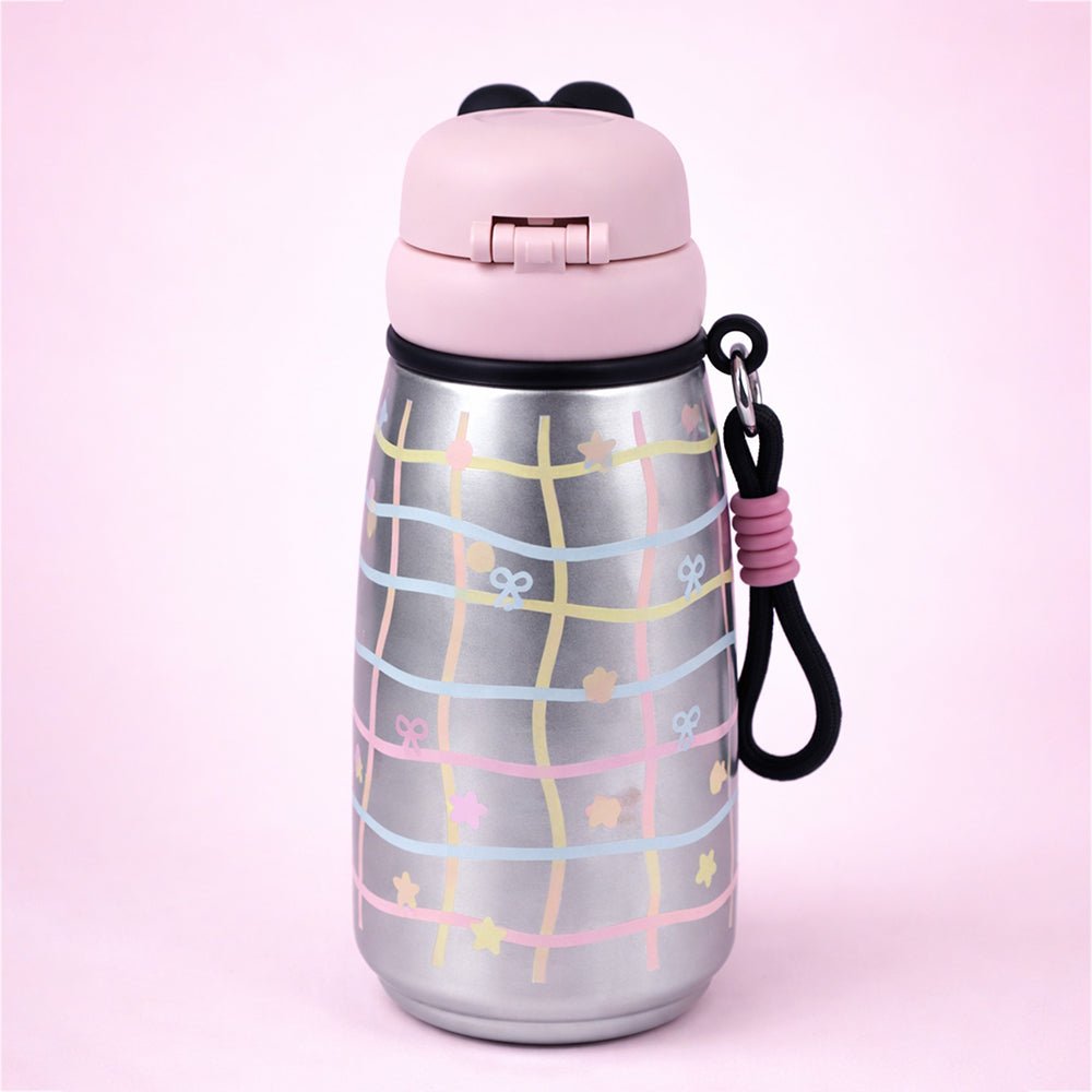 - Product Design: The bottle features shiny silver base with pastel grid lines, stars, and dots gives this bottle a trendy and playful charm.