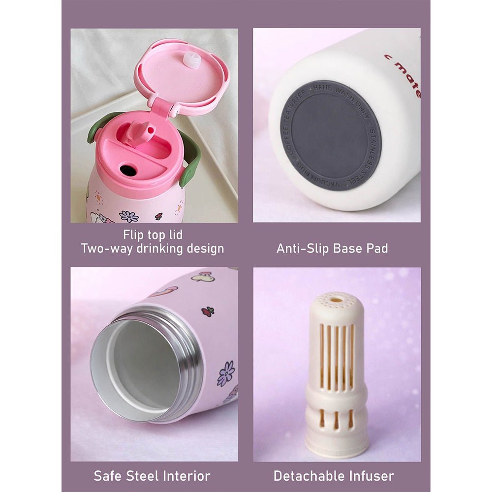 - Insulated with Filter Thermos: A sleek and stylish bottle featuring a warm brown base adorned with soft pastel floral, geometric designs—stylish, minimal, and perfect for both kids and adults. Comes along with a detachable internal filter/infuser ideal for tea leaves, fruit infusions, herbs, or preventing ice and fruit pieces from coming through while drinking. Hence is useful for kids as well as adults.