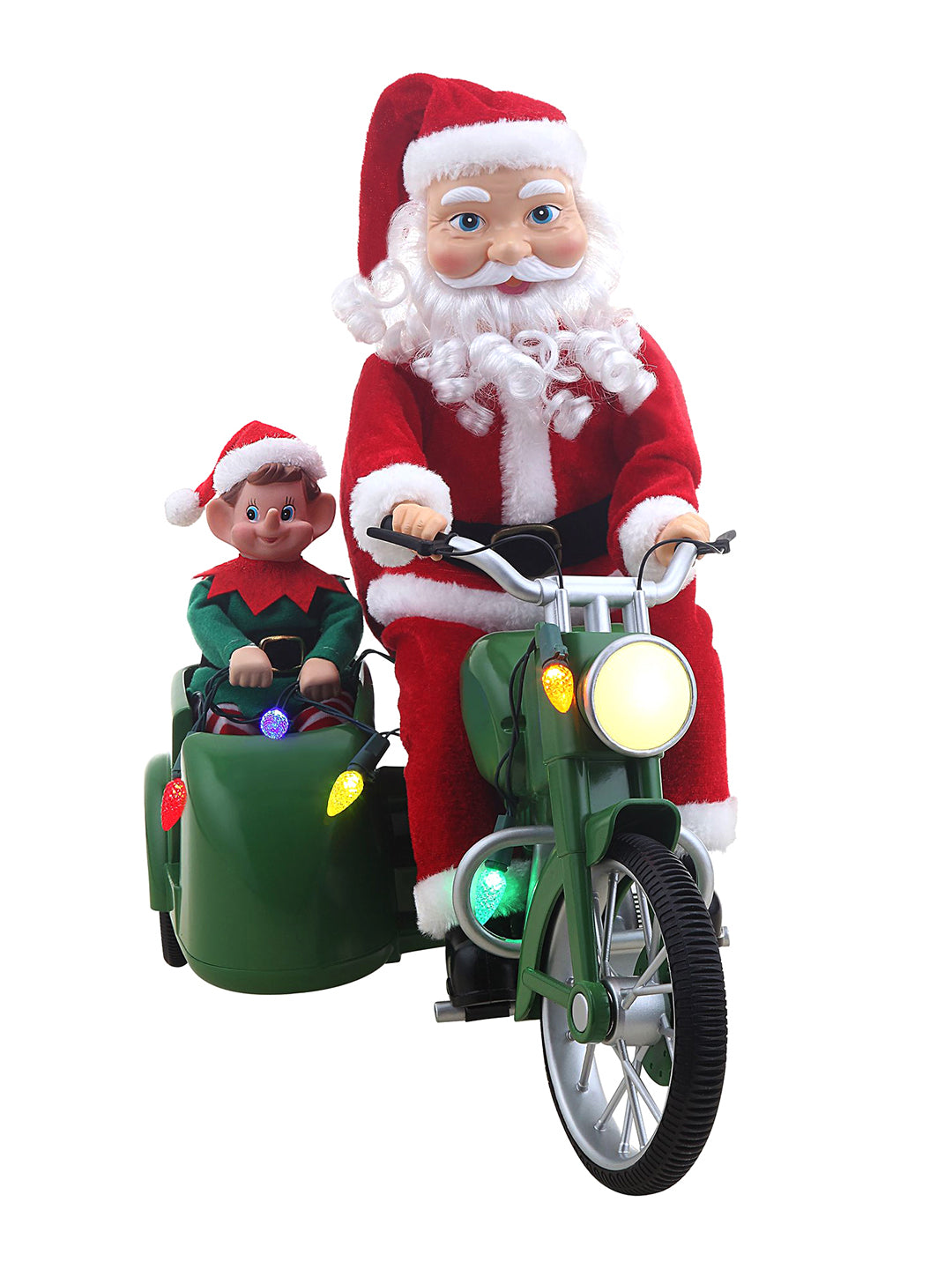 - Unique moving christmas Home decor: Watch Santa and his elf cruise on a vintage-style motorcycle that actually moves around the home therby creating a unique and fun twist to Christmas décor.This moving decor display brings fun, laughter, and creates memories to your holiday décor.