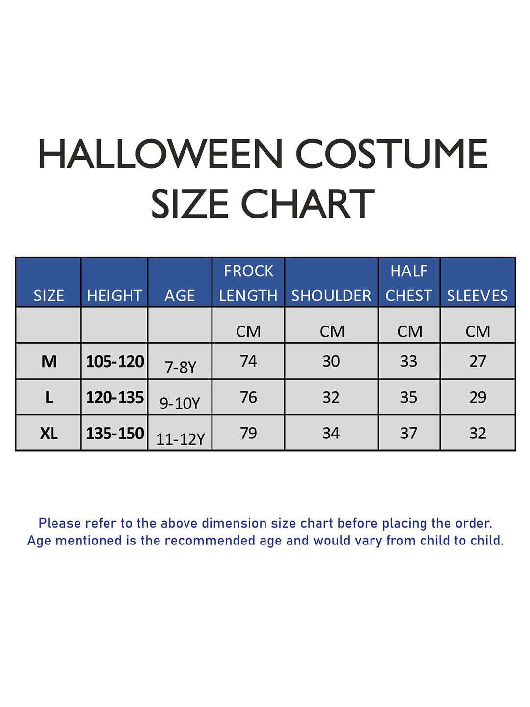 • Age: This outfit is available for kids aged between 7 -12yrs of age. Please refer to the size chart to pick the size u looking at.