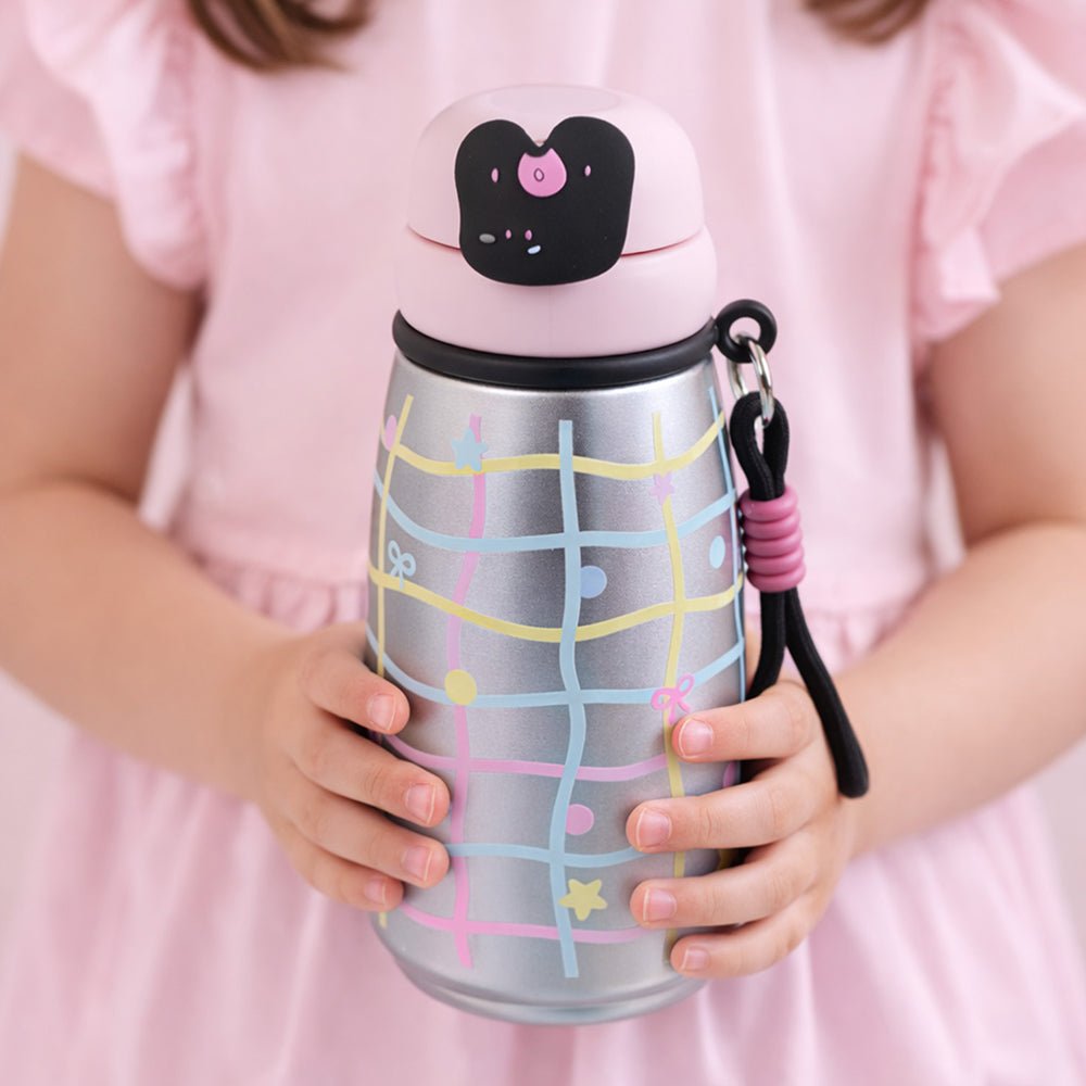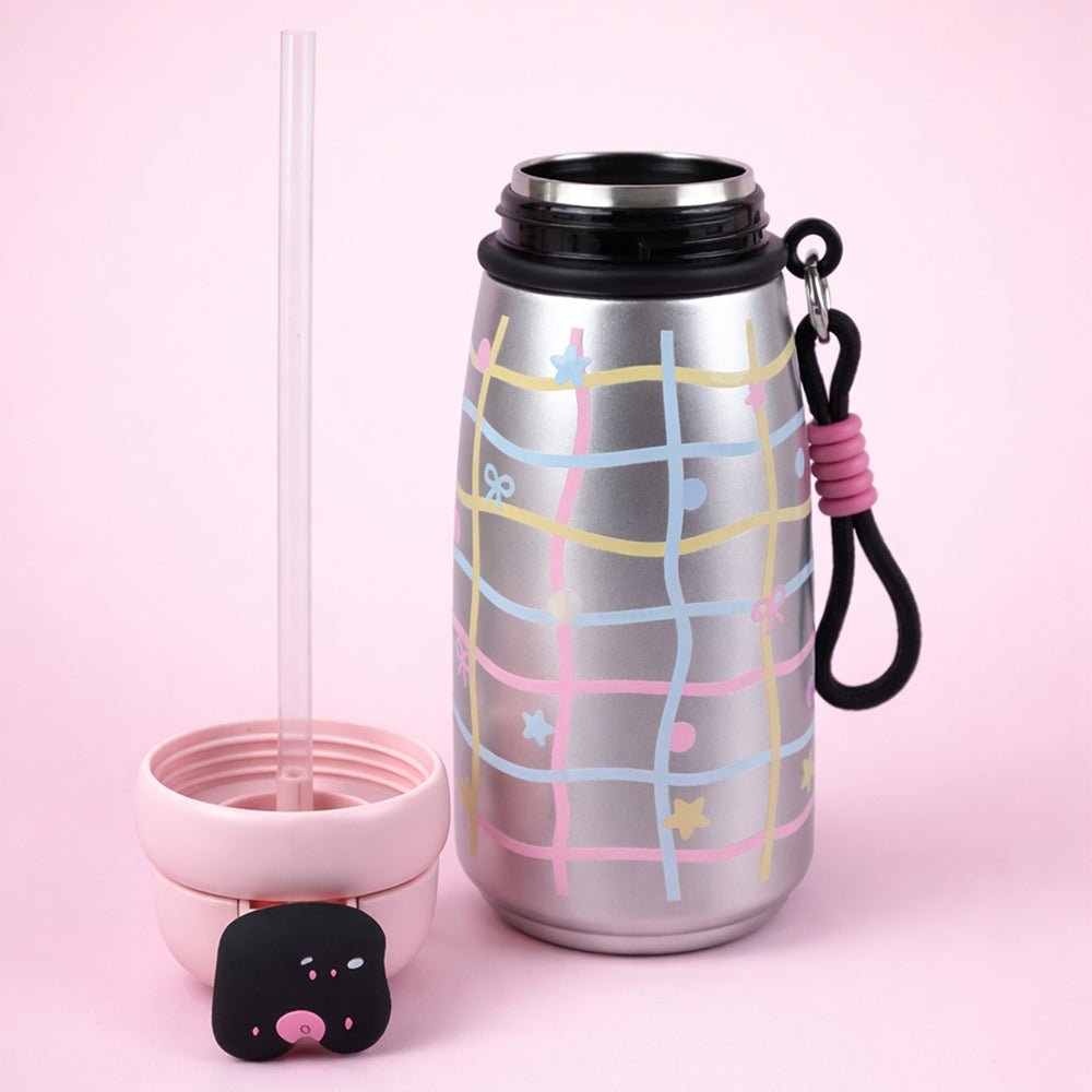 - Product Design: The bottle features shiny silver base with pastel grid lines, stars, and dots gives this bottle a trendy and playful charm.