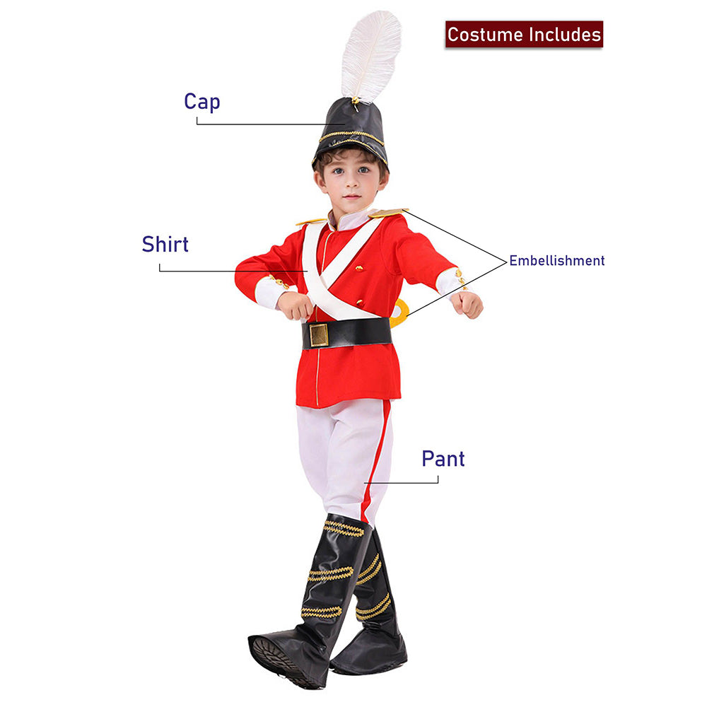 - Quality: Made of good quality cloth, very comfortable and breathable to wear. Designed for kids to play the role of a British Soldier. Suitable for both Boys and Girls.