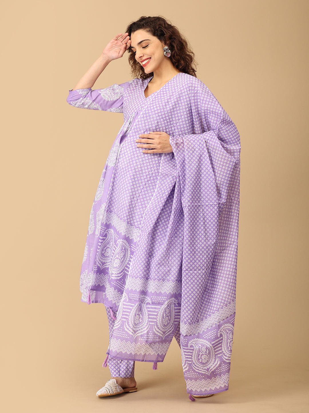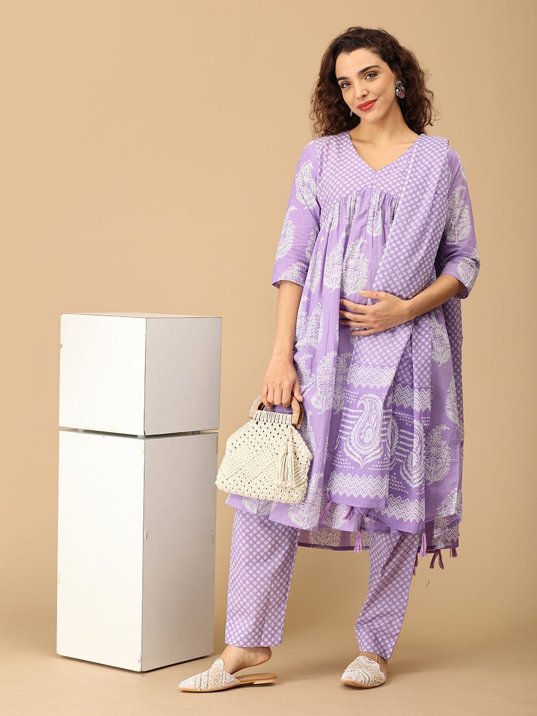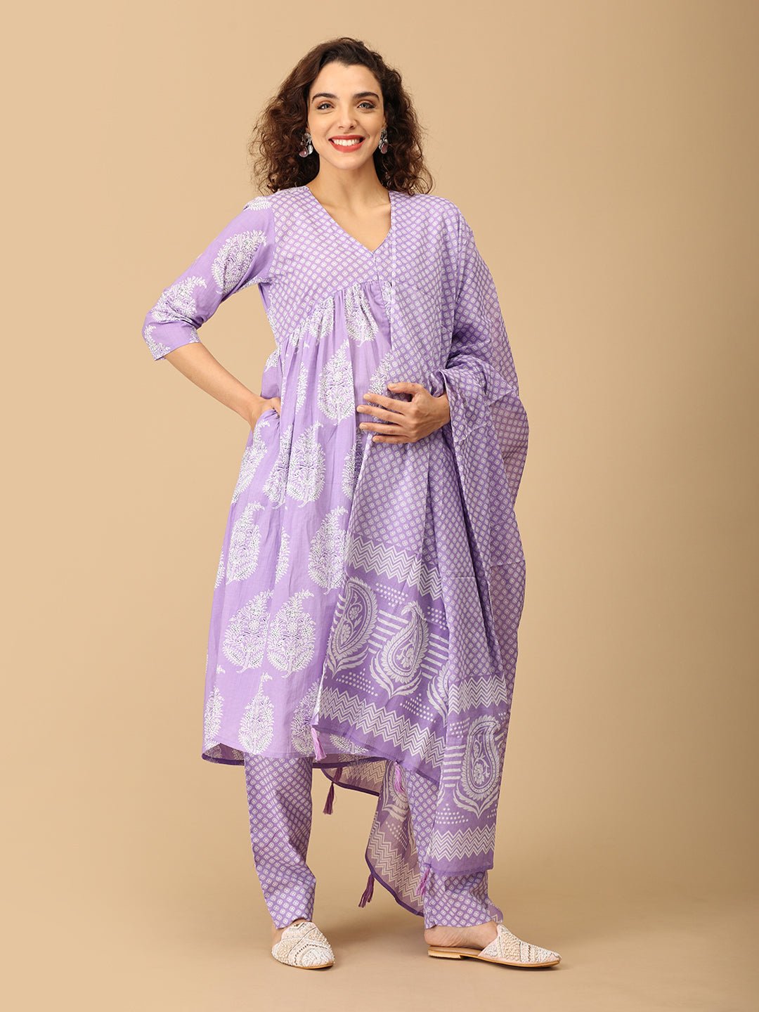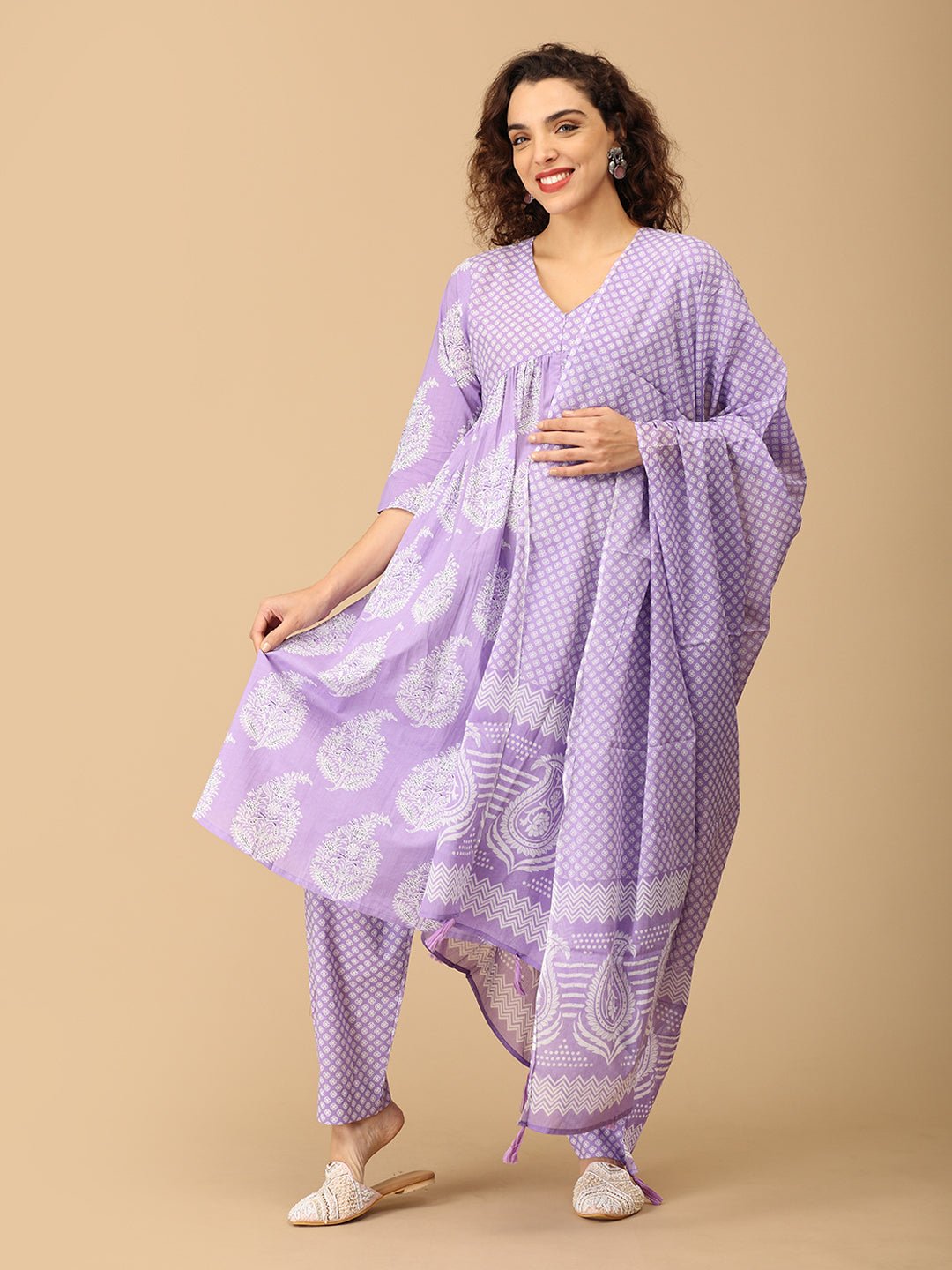 •Lavender Maternity and Nursing Kurta Set With Dupatta