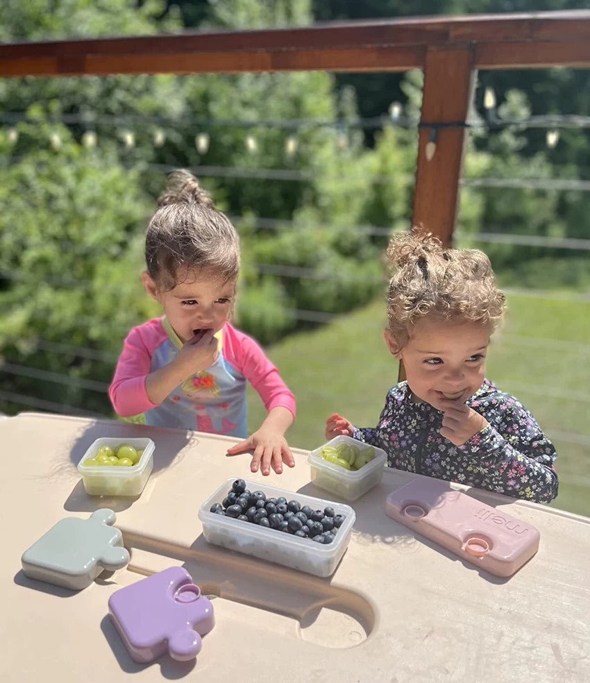 - The puzzle latches make the lids easy for kids to open and close, which encourage independent feeding.