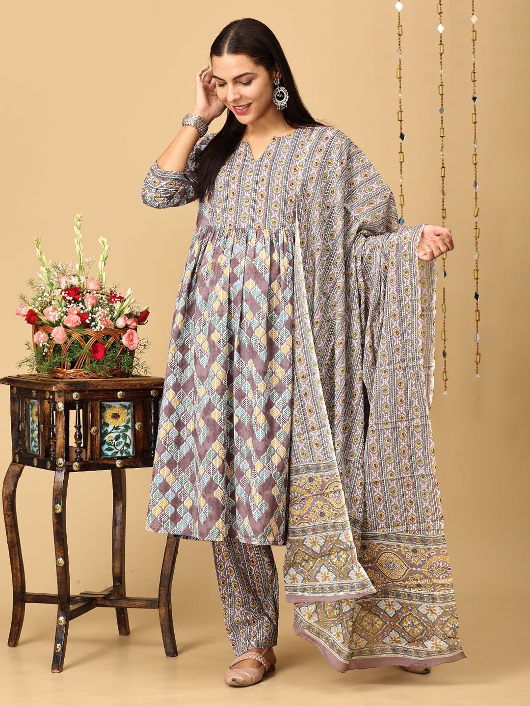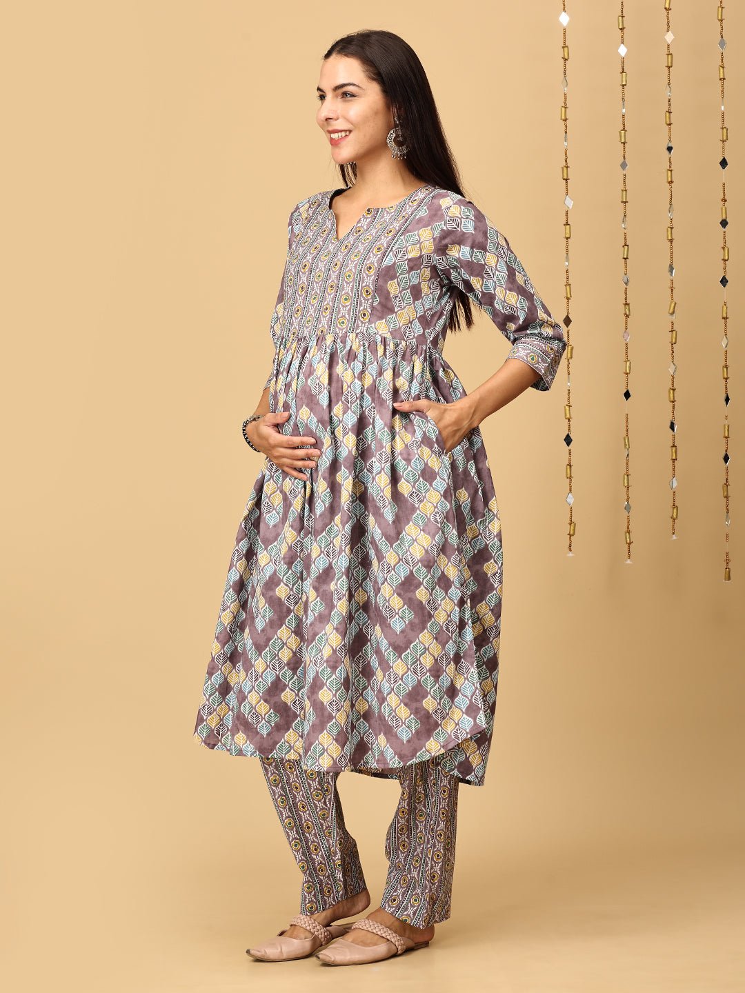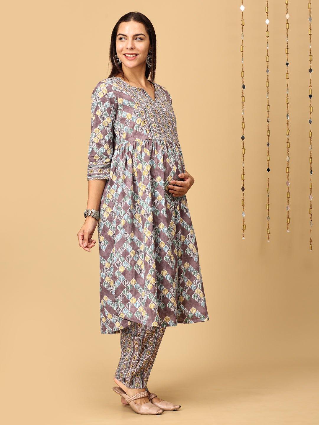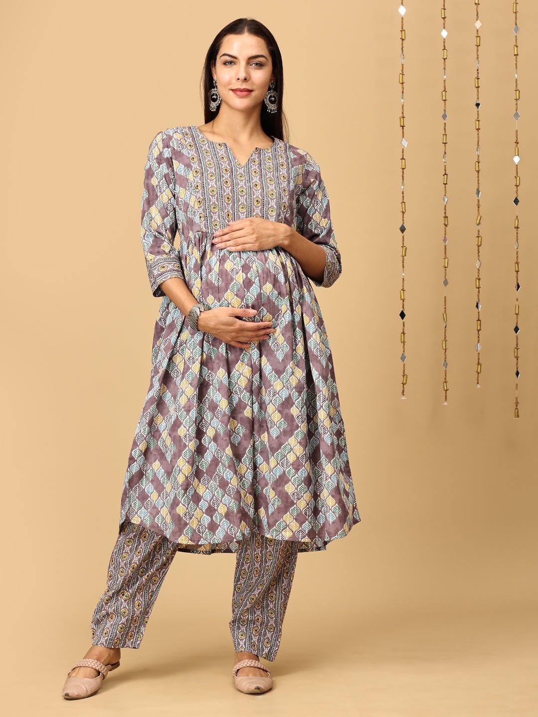 Mocha Mousse Maternity and Nursing Kurta Set With Dupatta