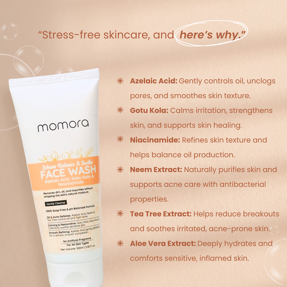 It clears away excess oil, calms sensitivity, and helps reduce acne, inflammation, and clogged pores all while respecting your skin’s delicate barrier. Whether you’re dealing with hormonal breakouts or just want a reset that feels refreshing and safe, this face wash is your daily sigh of relief.