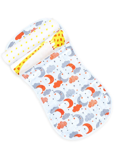 Muslin Burp Cloth Combo Of 3- Moon Kid-Yellow Star- Moon And Stars