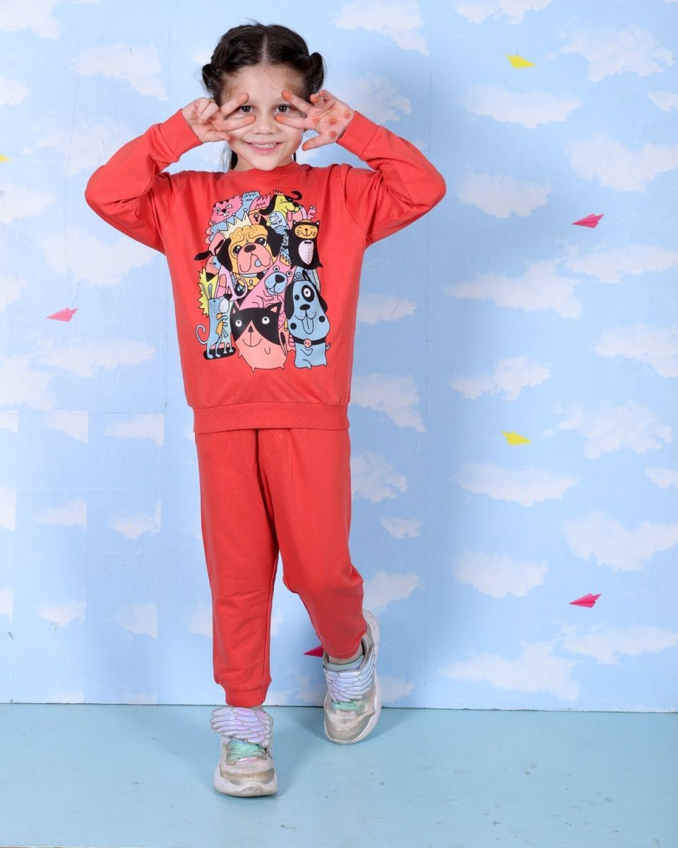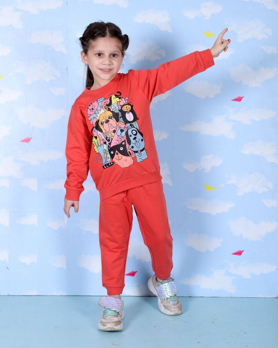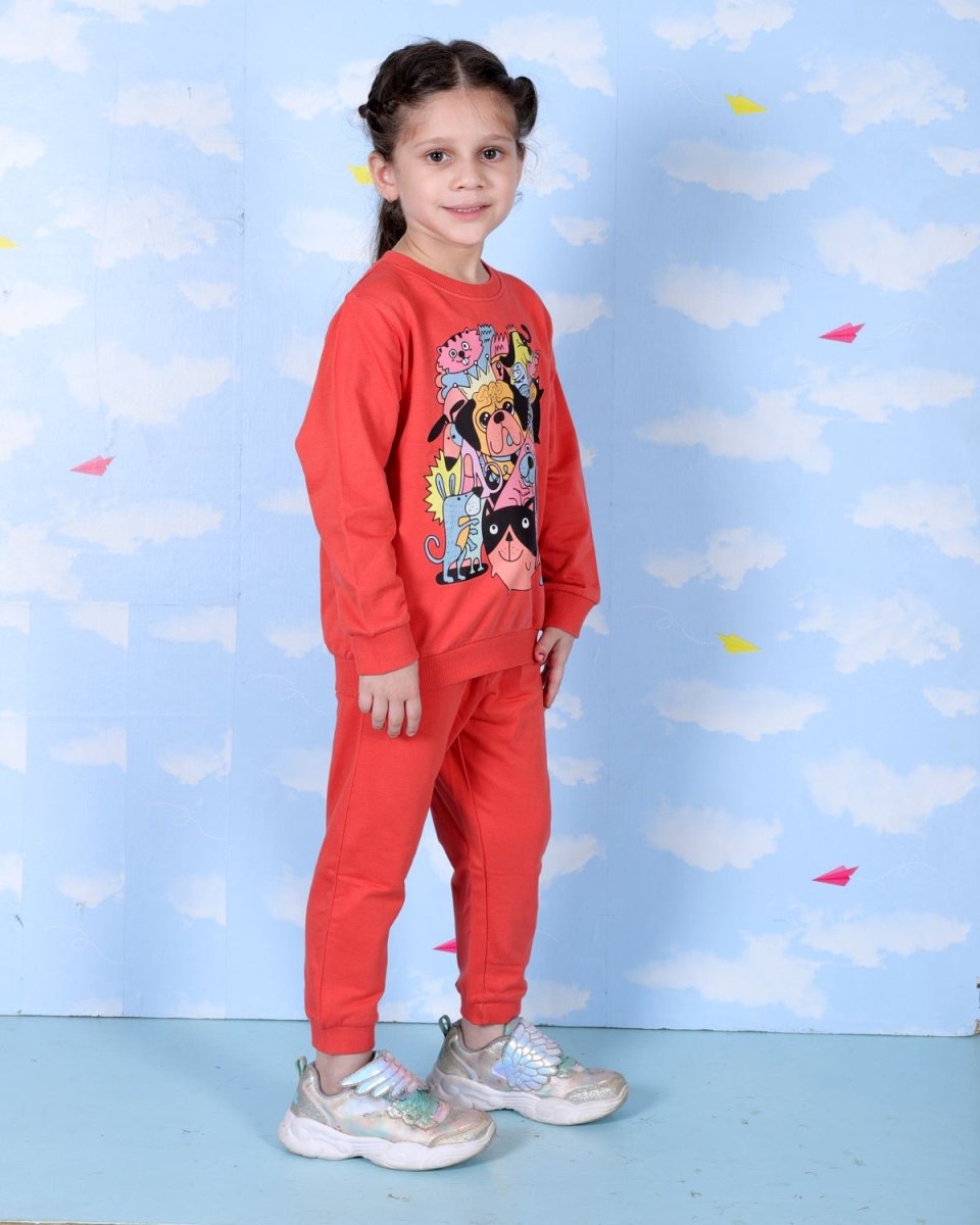 - Girls Cute Animals Print Sweatshirt with Jogger Set
