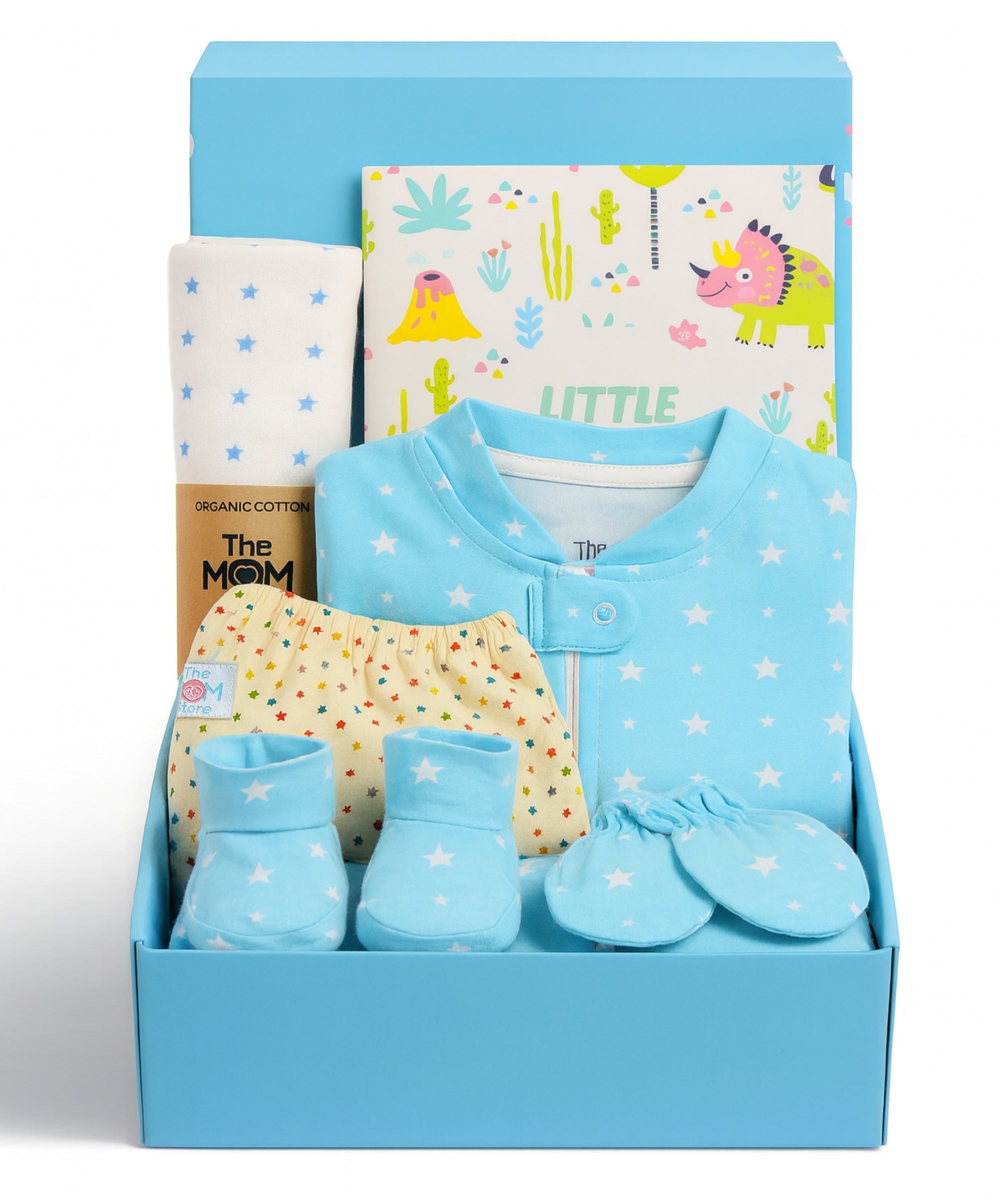 The Mom store presents multi pieces gift set for babies- Sparkle. Set contains one Romper, one Bib, one Swaddle, one Cloth Diaper and one set of Milestone Cards. The prints on this set is attractive and beautiful. Made from cotton, this combo set ensures optimum comfort. This soft 8 piece set will be a perfect addition to your little ones collection.