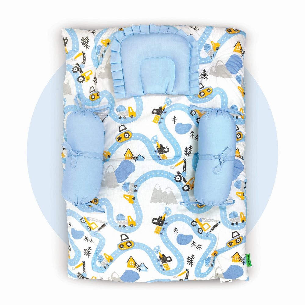 Nuluv Cotton 4 pcs Gadda Set - Transport with 100% Cotton 180 TC and antimicrobial & Hypoallergenic Filling, Cotton Bed,2 side round Pillow,1 Head Pillow,