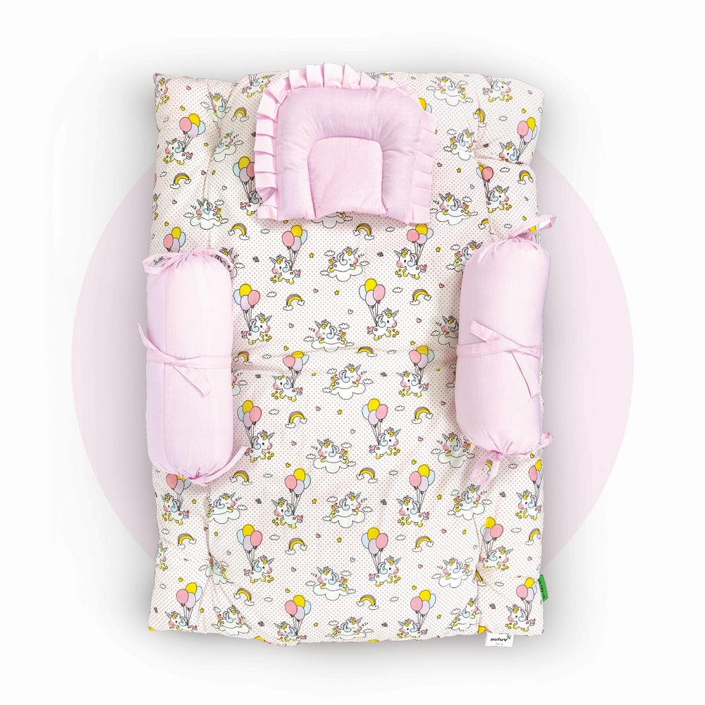 Nuluv Cotton 4 pcs Gadda Set - Transport with 100% Cotton 180 TC and antimicrobial & Hypoallergenic Filling, Cotton Bed,2 side round Pillow,1 Head Pillow,