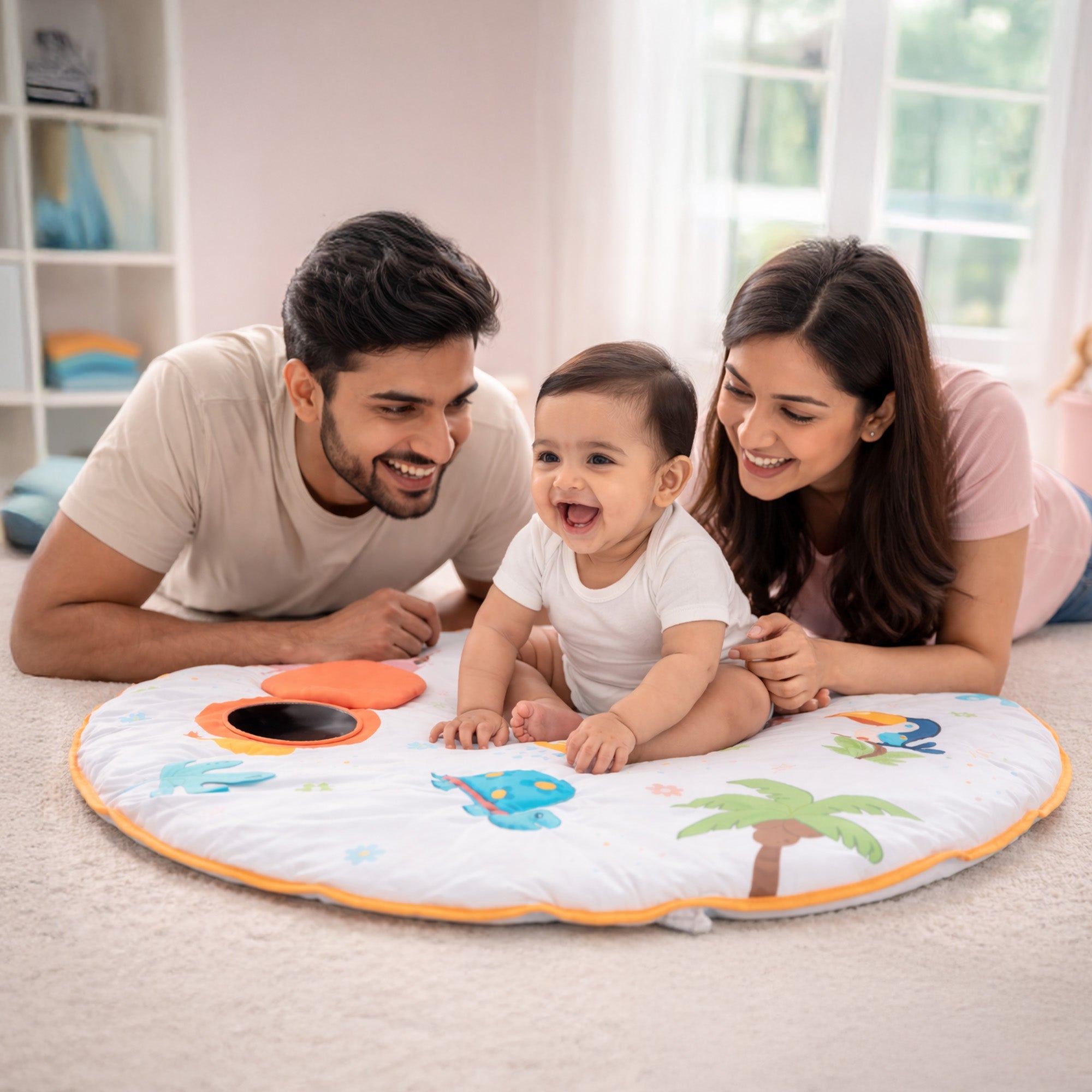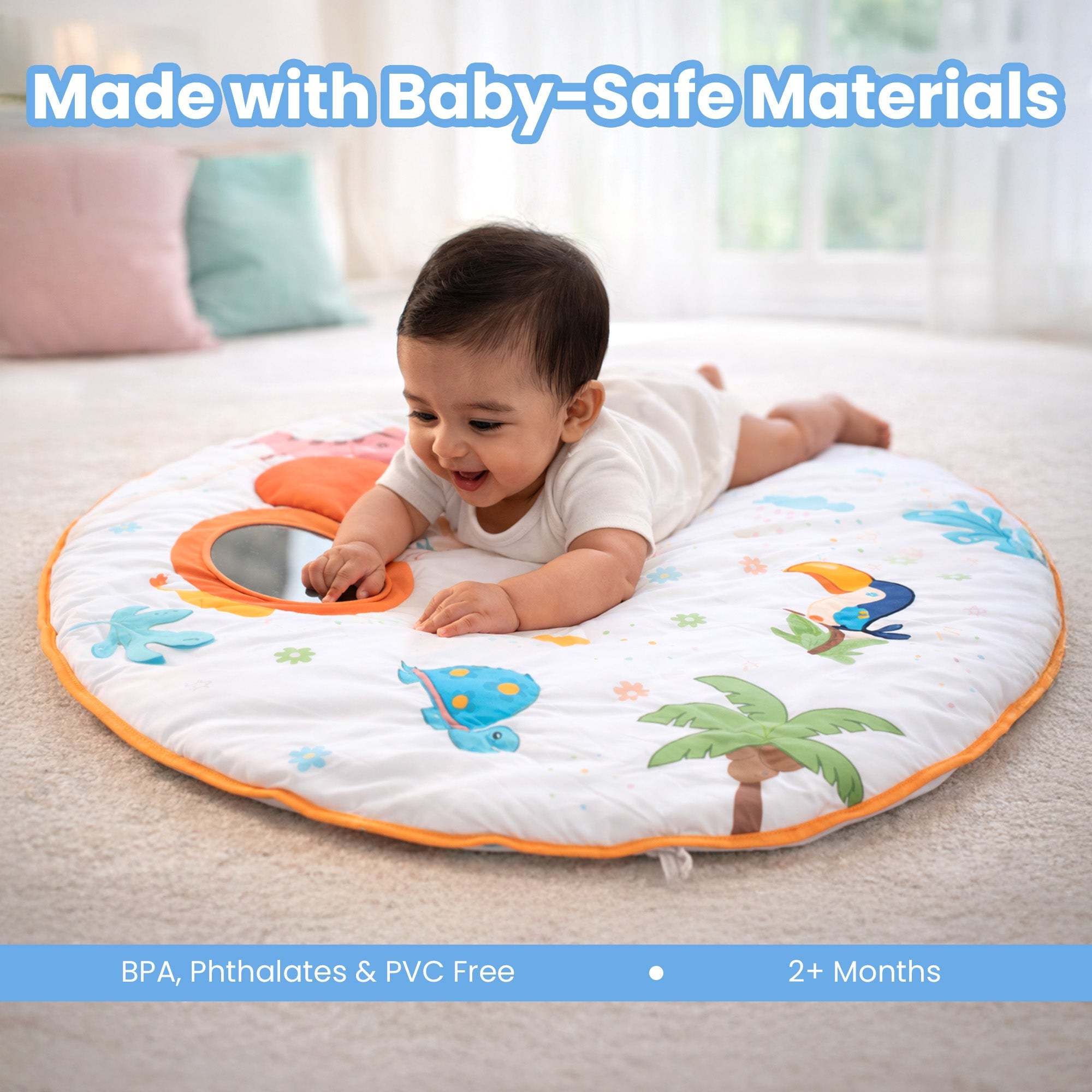 - SAFE AND COMFORTABLE Made with non-toxic, breathable, and baby-friendly fabrics. Soft padded mat ensures comfort while complying with BIS safety standards.