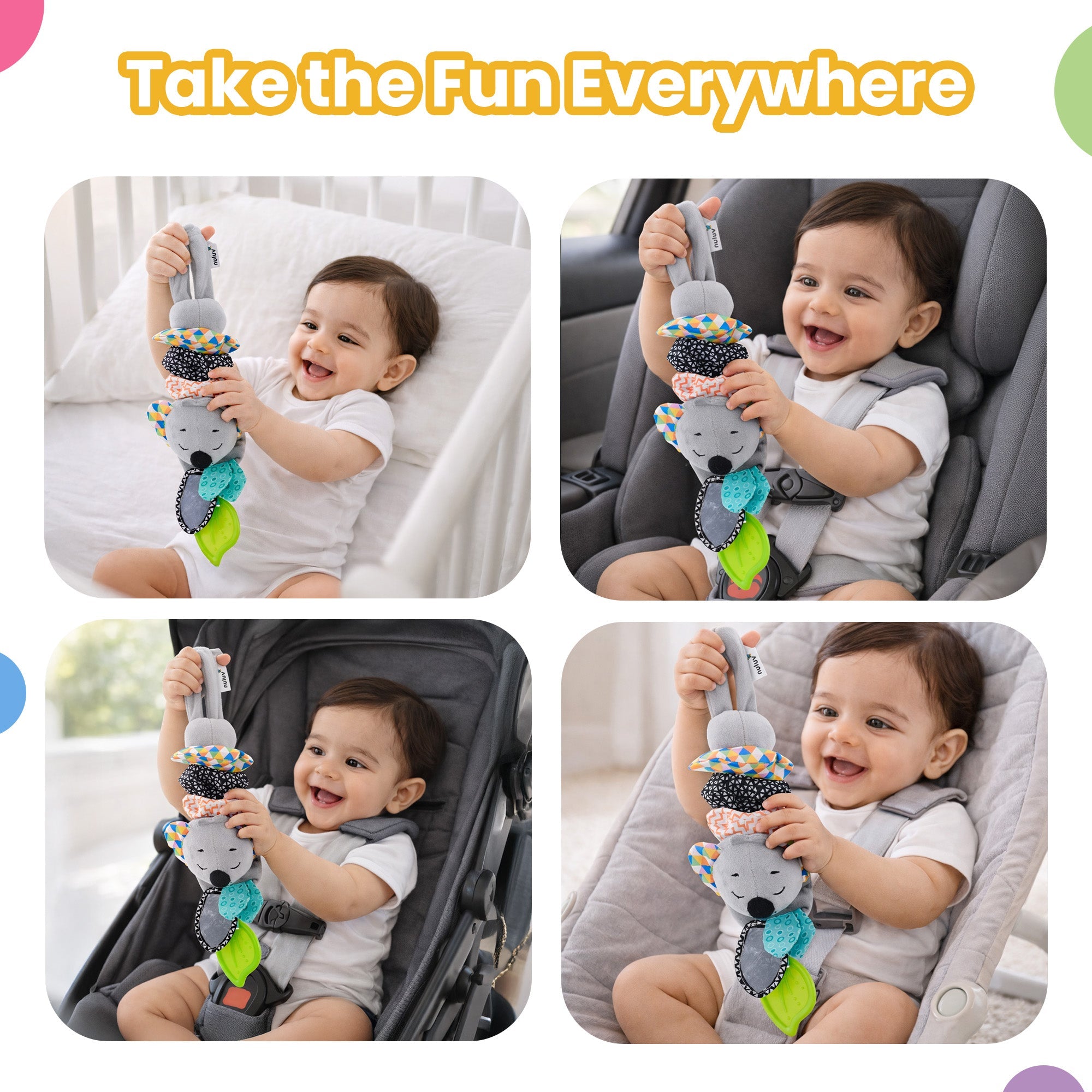 - Fun crackling sounds in the ears and leaves to keep your baby curious and engaged.