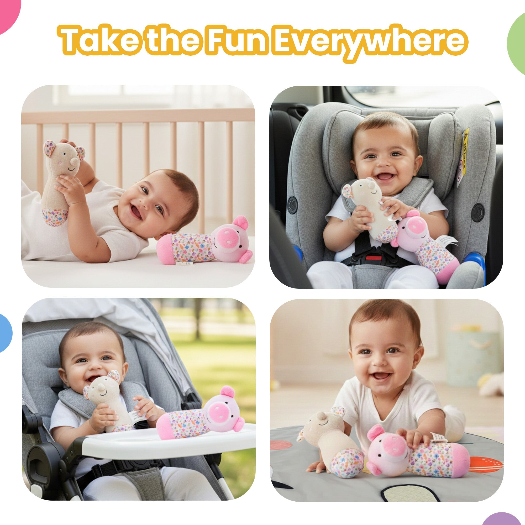 Sensory Cuddlies are soft, colorful toys designed to stimulate your baby’s senses. With a mix of textures, sounds, and cute designs, they encourage tactile exploration, comfort, and play.