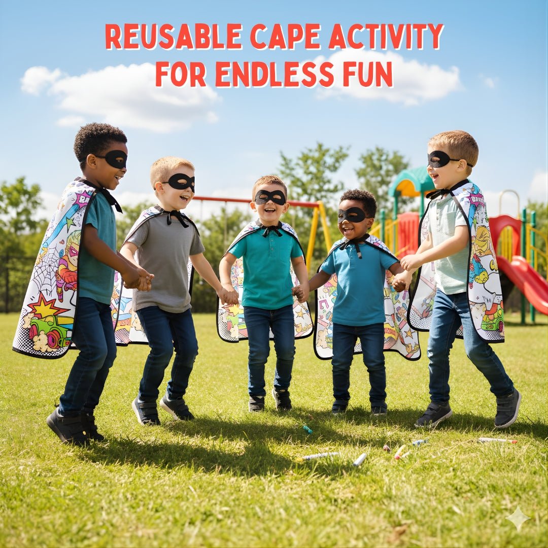 - STAINFREE & WASHABLE: Parents can be confident that the PepPlay My Superhero Cape Kit is safe for their children to use. The non-toxic markers are completely washable and do not stain clothes or furniture. Additionally, the kit is designed to be easy to clean and maintain, ensuring that it can be used again and again for many imaginative adventures.