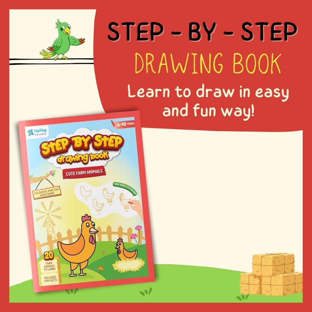 PepPlay Step by Step Drawing Book- Cute Farm Animals Theme